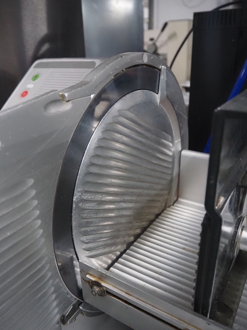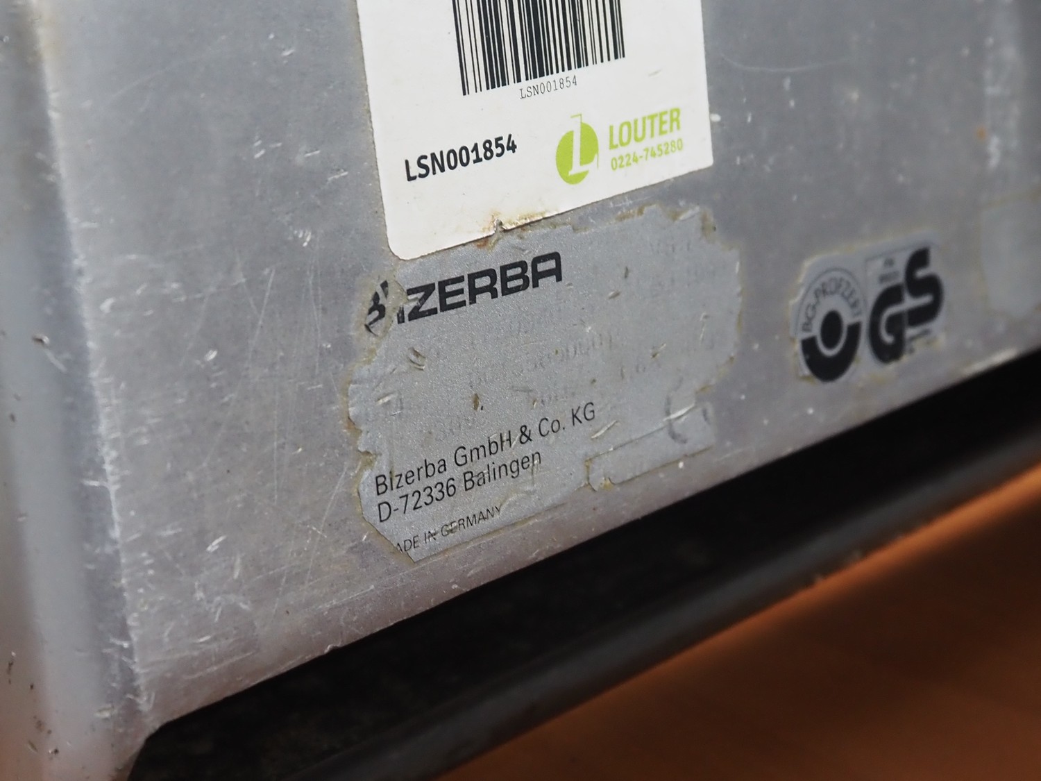 Bizerba slicer, model: VS 12, dimensions: 600 mm x 560 mm x 430 mm. Including knife sharpener.