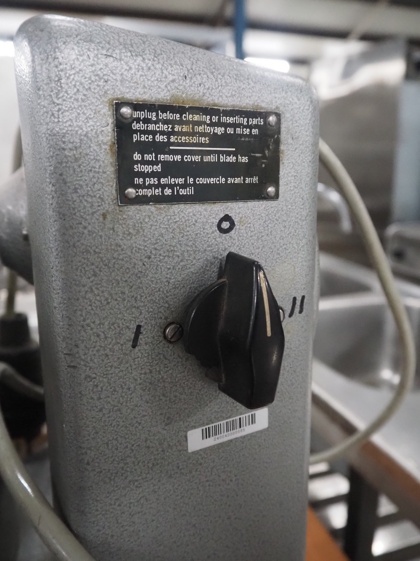 Robot Coupe cutter, type: R.6, number: 21/6841, 360 V, 50 Hz, 4.6/5.5 A, 1700/2200 W, volume: 6 liter, dimensions: 430 mm x 370 mm x 560 mm.