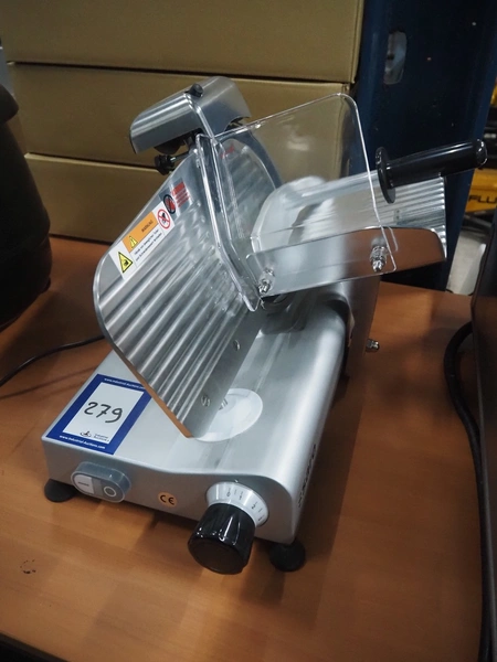Saro Gastro-Products GmbH slicer, type: IVORNO/418-1003, serial number: 210820020, year of construction: 10.08.2021, 230 V, 1 Ph, 50 Hz, 1 A, 0.23 kW, dimensions: 500 mm x 400 mm x 360 mm.