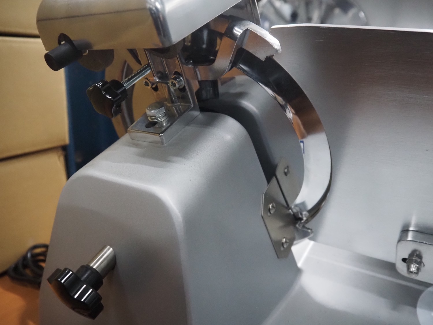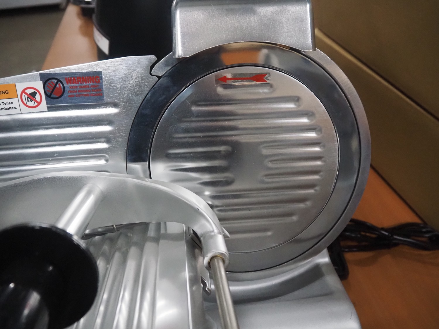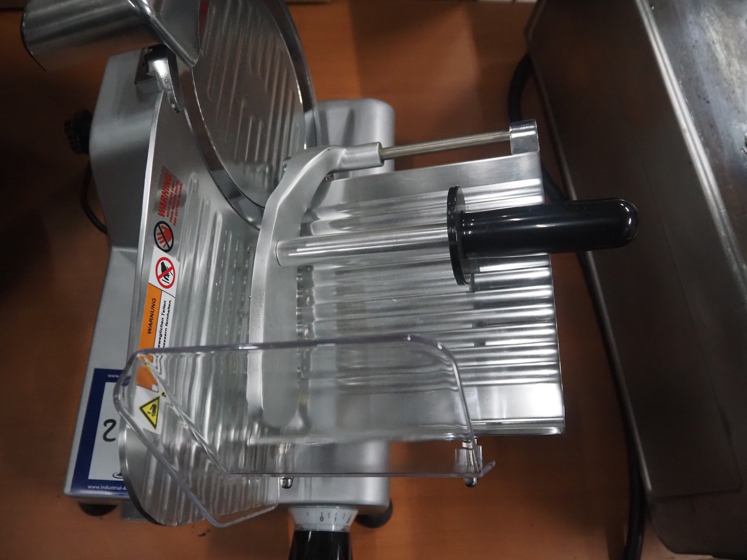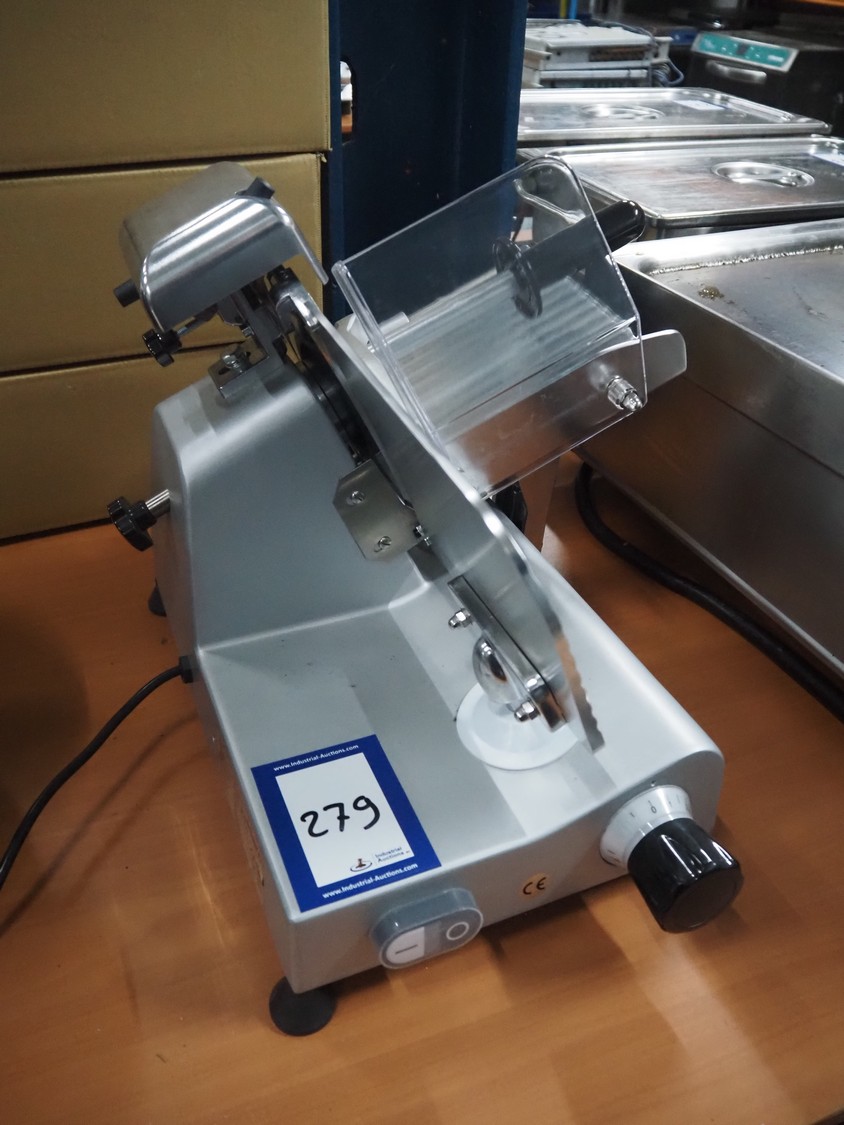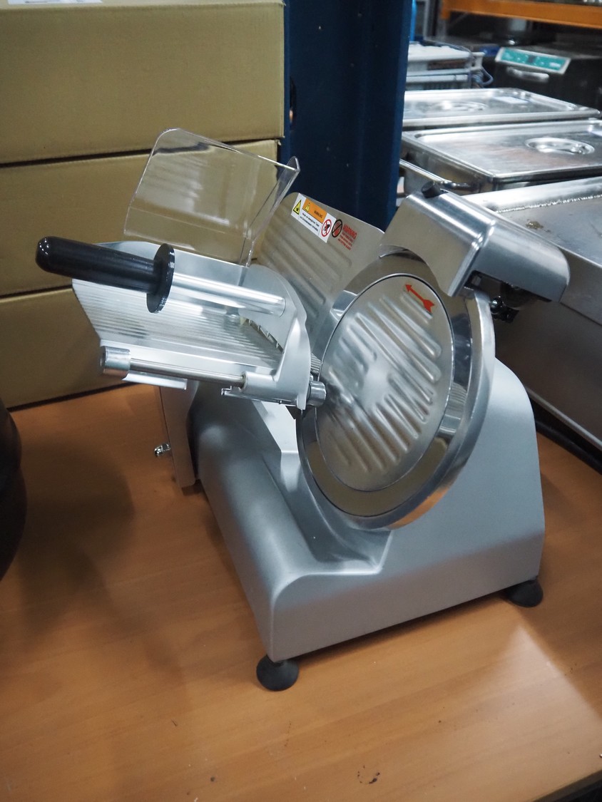 Saro Gastro-Products GmbH slicer, type: IVORNO/418-1003, serial number: 210820020, year of construction: 10.08.2021, 230 V, 1 Ph, 50 Hz, 1 A, 0.23 kW, dimensions: 500 mm x 400 mm x 360 mm.