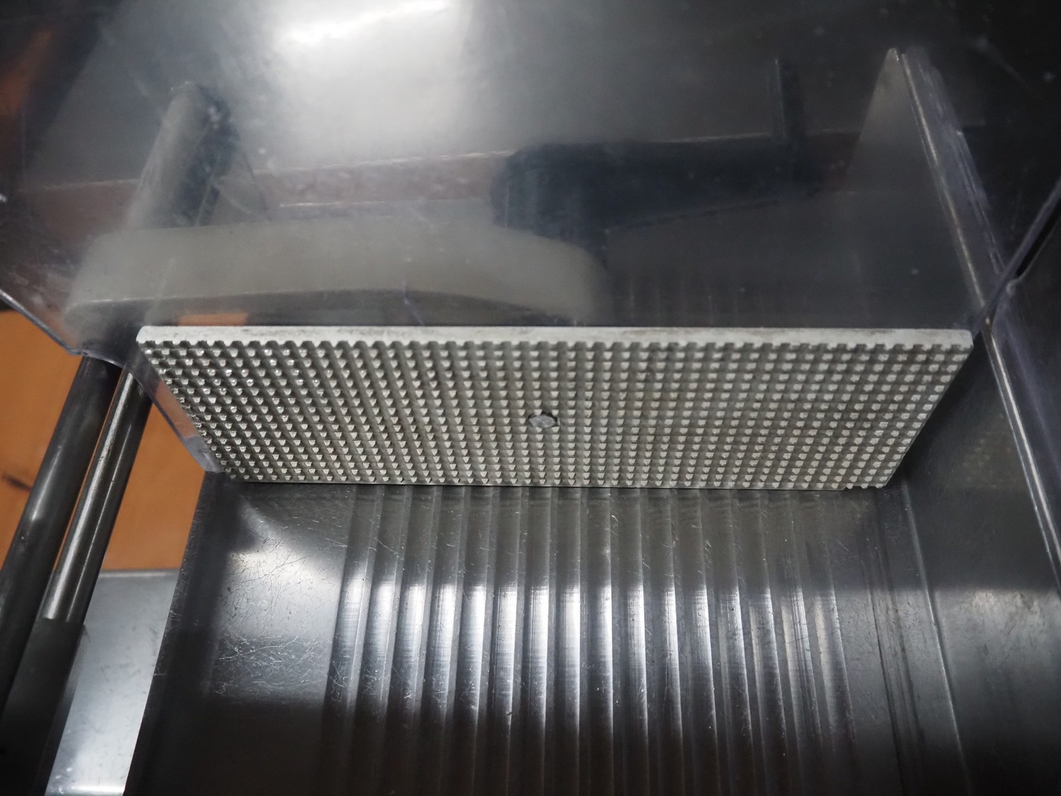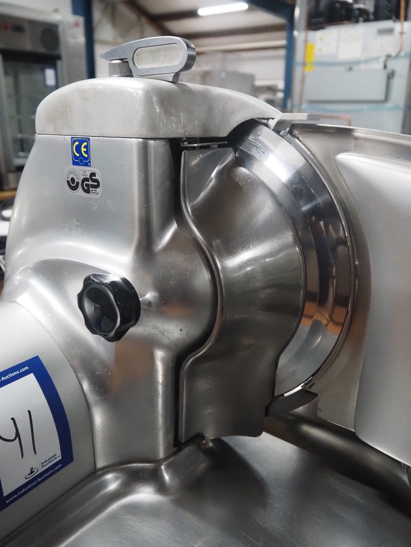 Berkel slicer, type: 834 S, number: 629834, year of construction: 1996, 230 V, 1 Ph, 50 Hz, 220 W, dimensions: 700 mm x 600 mm x 520 mm.
