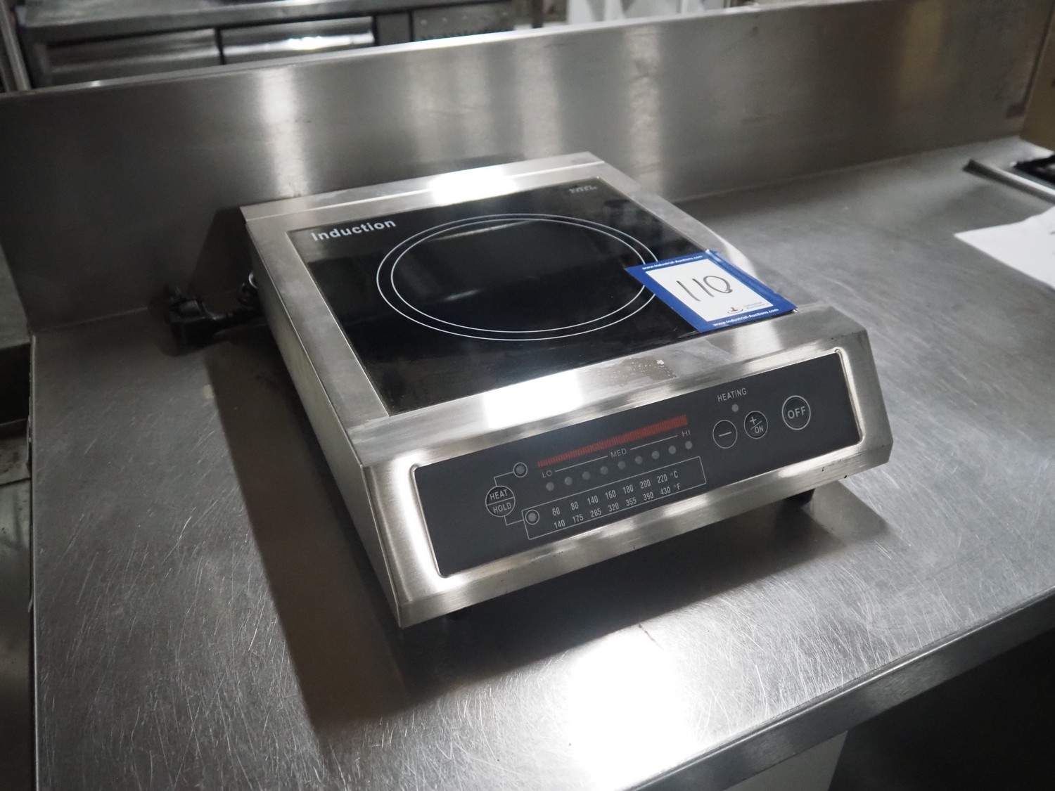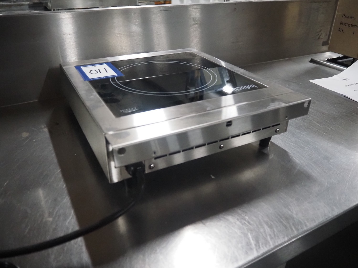 Saro Gastro-Products GmbH induction hob, model: 301-1001/AT-25C, serial number: 170622005, 230 V, 50 Hz, 2500 W, dimensions plate: 280 mm x 270 mm, total dimensions: 420 mm x 330 mm x 100 mm.