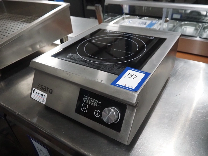 Saro Gastro-Products GmbH induction plate, serial number: 2022120364, year of construction: December 2022, 380-400 V, 3 Ph, 50-60 Hz, 10 A, 5000 W, weight: 10.2 kg, dimensions induction plate: 320 mm x 300 mm, total dimensions: 540 mm x 400 mm x 200 mm.