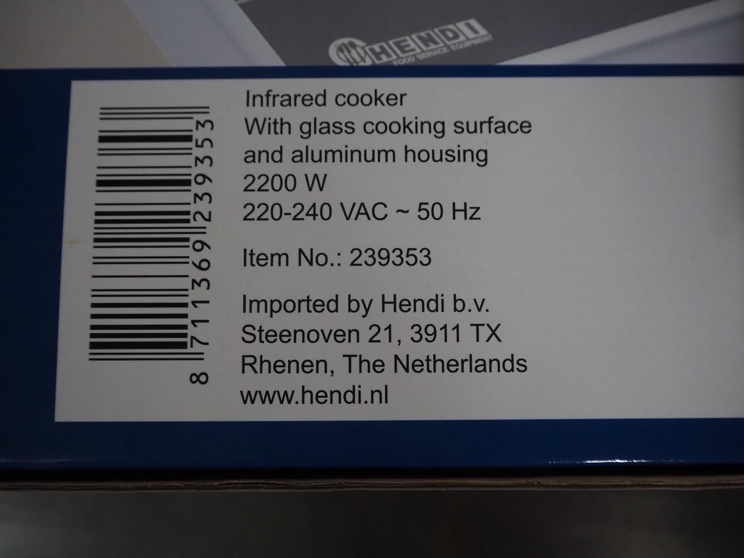 Hendi infrared cooker, 220-240 V, 50 Hz, 2200 W, dimensions: 400 mm x 300 mm x 100 mm.