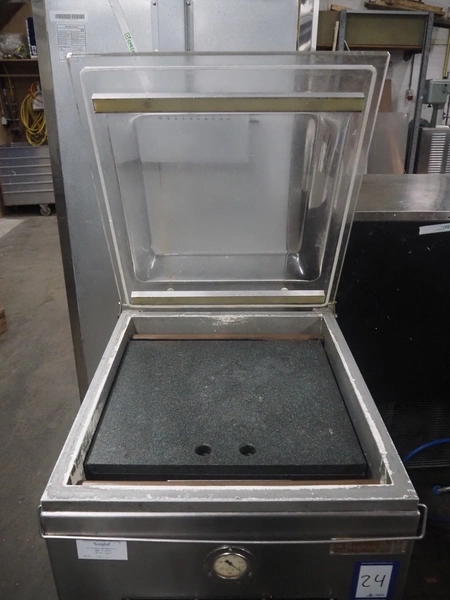 Stephan Alvac vacuum machine, type: ALVAC II SM, machine number: 8107-2061, 220-280 V, 3 Ph, 6.3-3.7 A, 1.5 kW, seal length: (2x) 500 mm, total dimensions: 750 mm x 600 mm x 1100 mm.