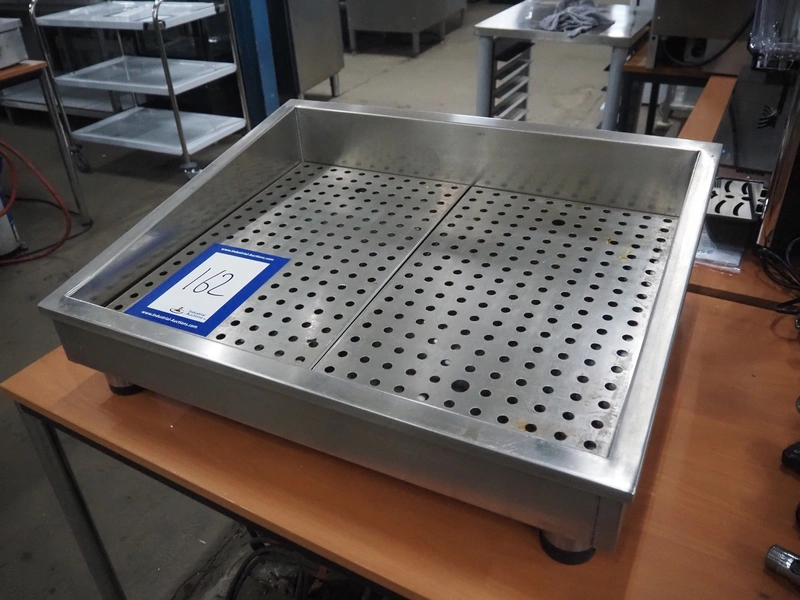 S/s tub for crushed ice, inside dimensions: 550 mm x 690 mm, total dimensions: 750 mm x 620 mm x 260 mm.
