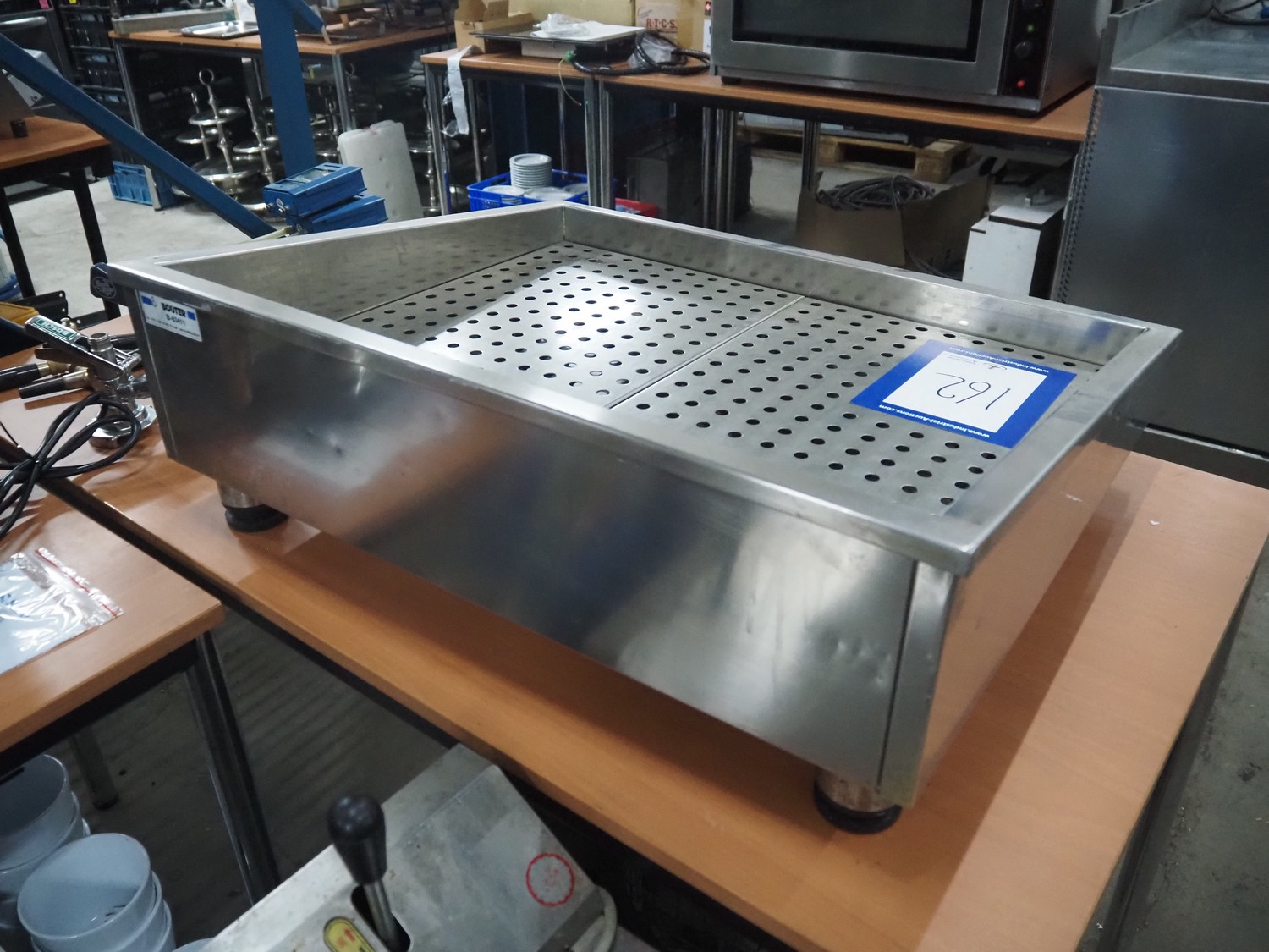 S/s tub for crushed ice, inside dimensions: 550 mm x 690 mm, total dimensions: 750 mm x 620 mm x 260 mm.