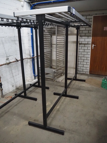 2 Loggere Metaalwerken coat racks with hangers, dimensions: (2x) 2350 mm x 730 mm x 1730 mm.