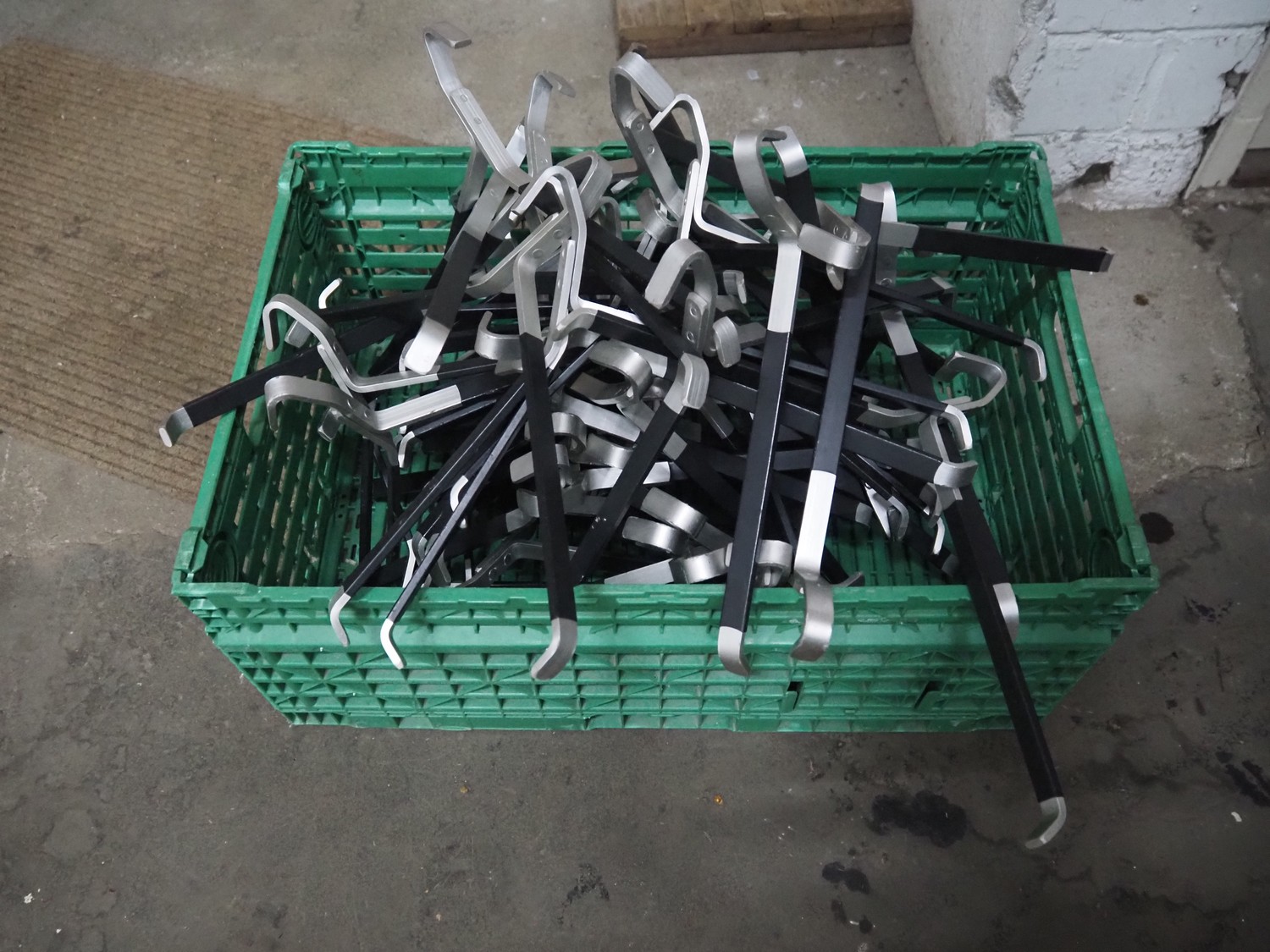 2 Loggere Metaalwerken coat racks with hangers, dimensions: (2x) 2350 mm x 730 mm x 1730 mm.