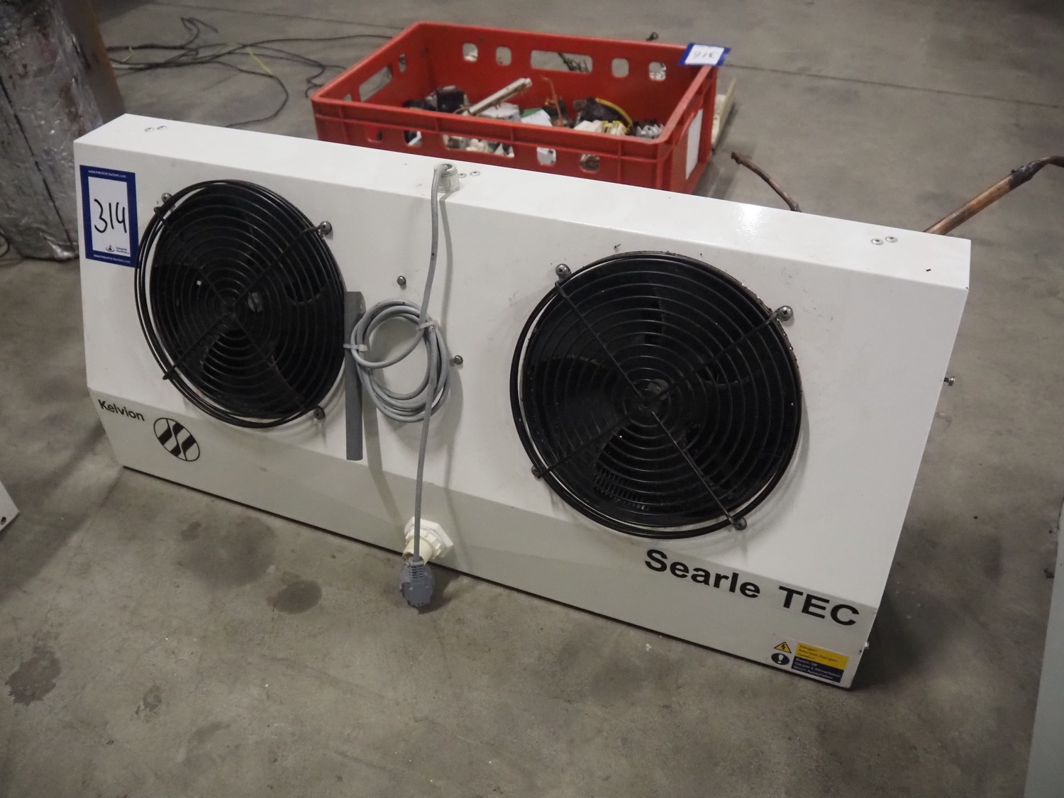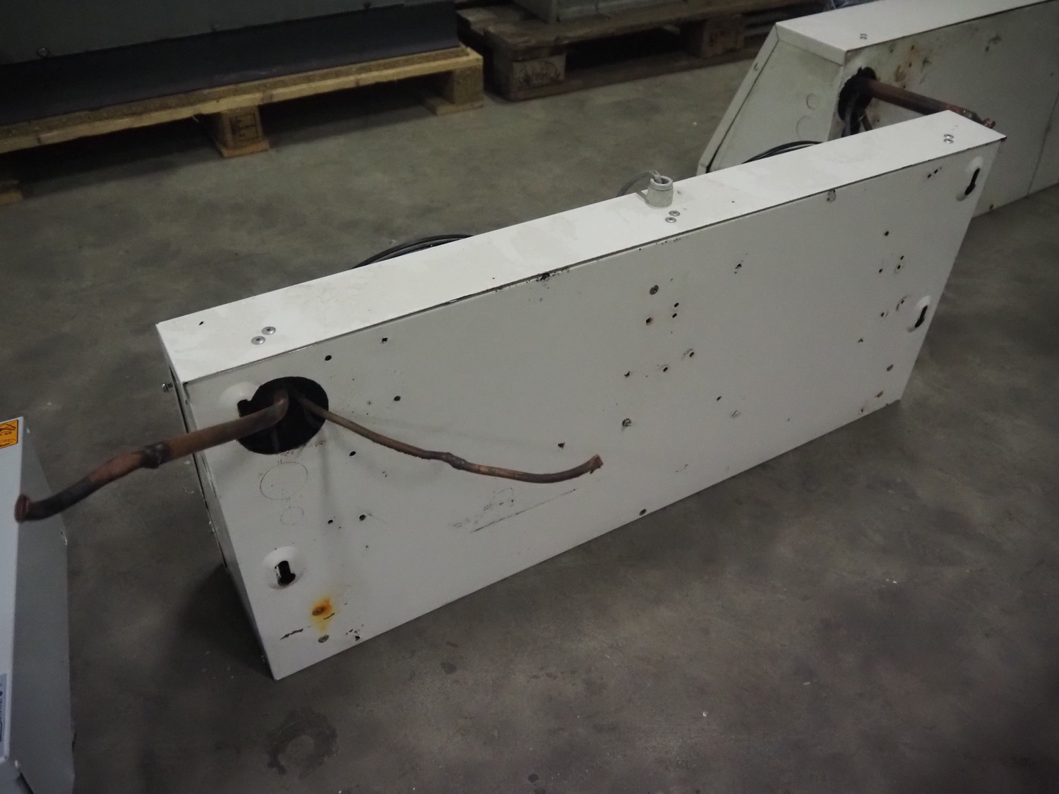 Kelvion evaporator, model: TEC4-5, serial number: 5200189930-0018, year of construction: 2017, 220 V, 1 Ph, 50 Hz, 0.3 A, 40 W, 2 fans, dimensions: 870 mm x 170 mm x 380 mm.