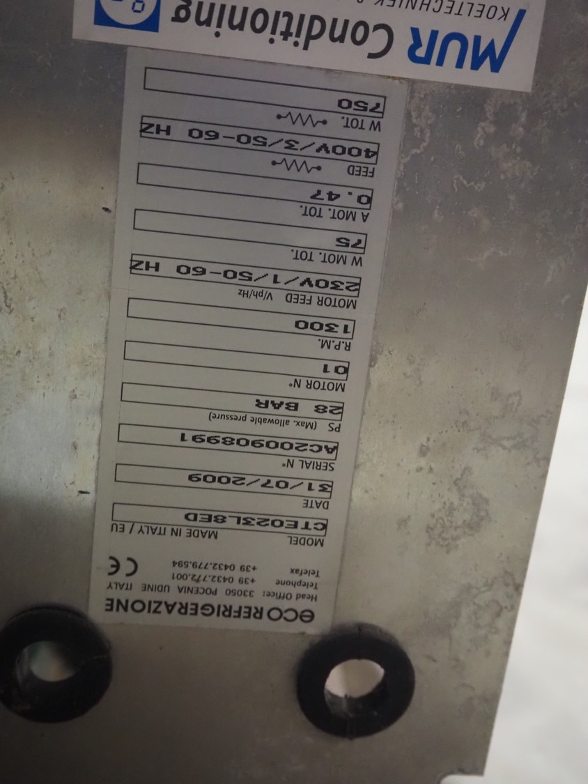 Eco Refrigerazione evaporator, model: CTE023L8ED, serial number: AC200908991, year of construction: 31/07/2009, 230 V, 1 Ph, 50/60 Hz, 75 W, 1 fan, dimensions: 660 mm x 550 mm x 400 mm.