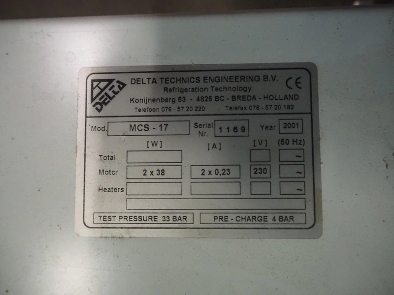 Delta Technics Engineering B.V. evaporator, model: MCS-17, serial number: 1169, year of construction: 2001, 230 V, 50 Hz, 2 fans, dimensions: 1200 mm x 460 mm x 150 mm.