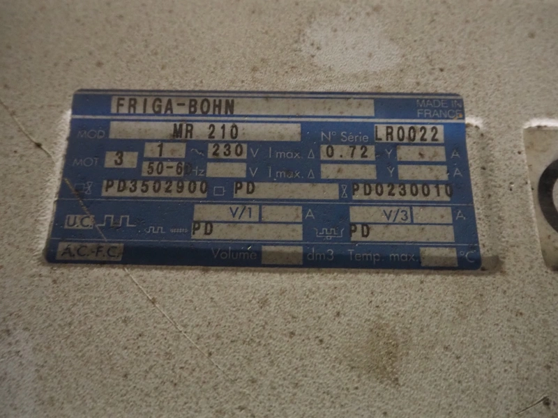 Friga-Bohn evaporator, model: MR 210, serial number: LR0022, 230 V, 1 Ph, 50-60 Hz, 3 fans, dimensions: 1150 mm x 430 mm x 180 mm.
