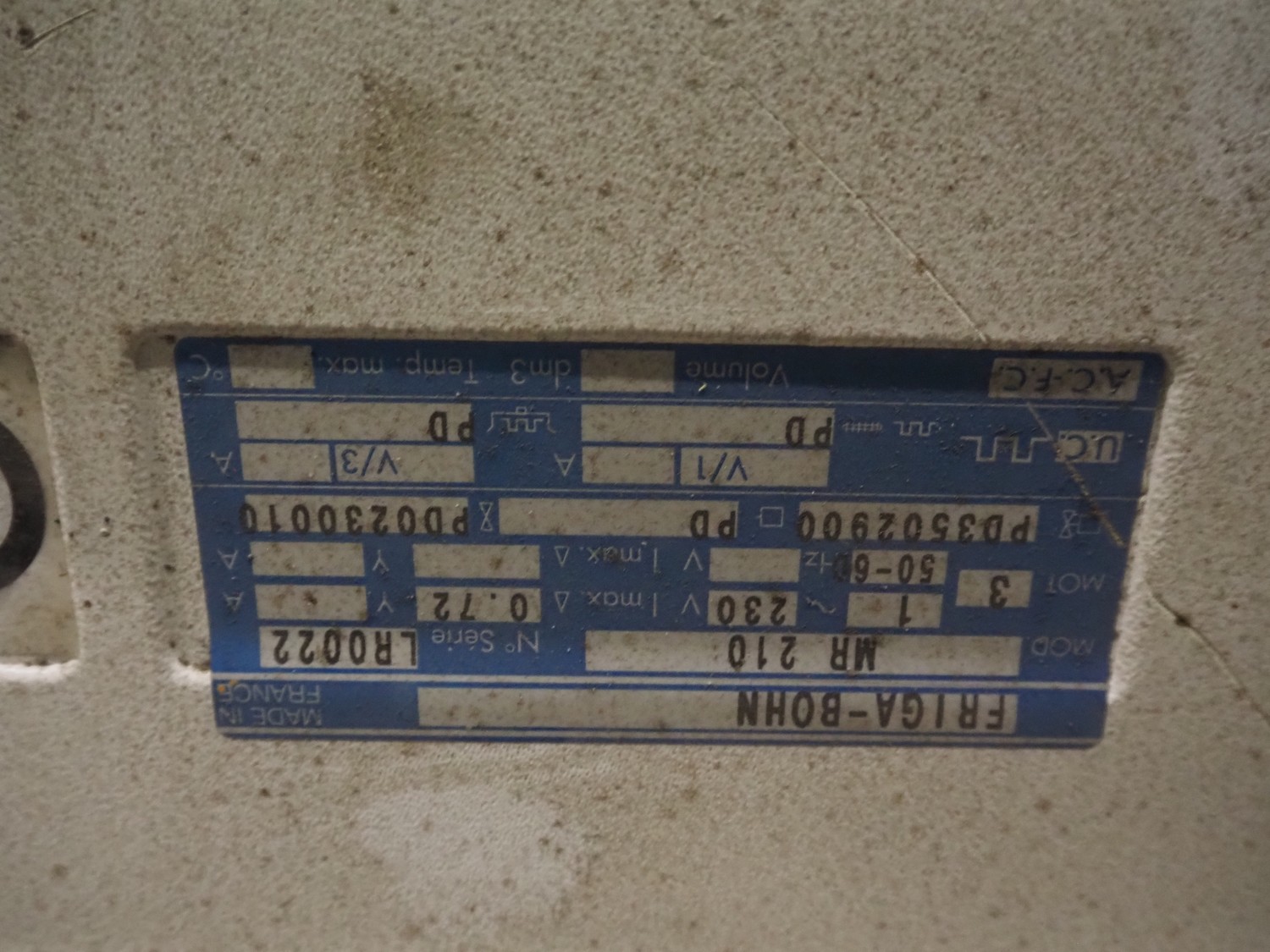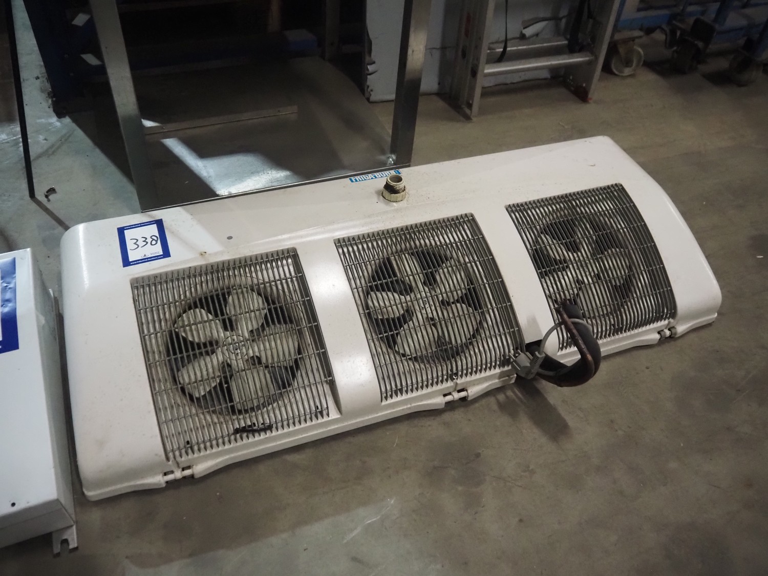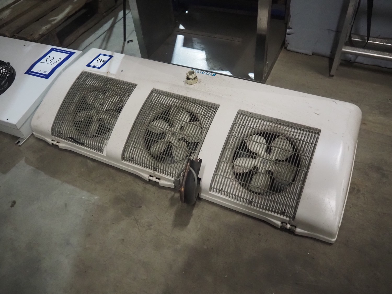 Friga-Bohn evaporator, model: MR 210, serial number: LR0022, 230 V, 1 Ph, 50-60 Hz, 3 fans, dimensions: 1150 mm x 430 mm x 180 mm.