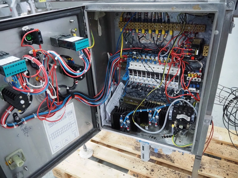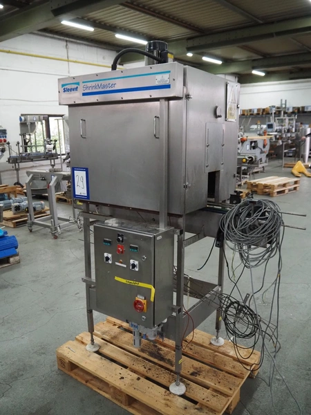 Sleevit dry tunnel, model: Shrinkmaster, belt width: 85 mm, total dimensions: 1250 mm x 950 mm x 2000 mm.