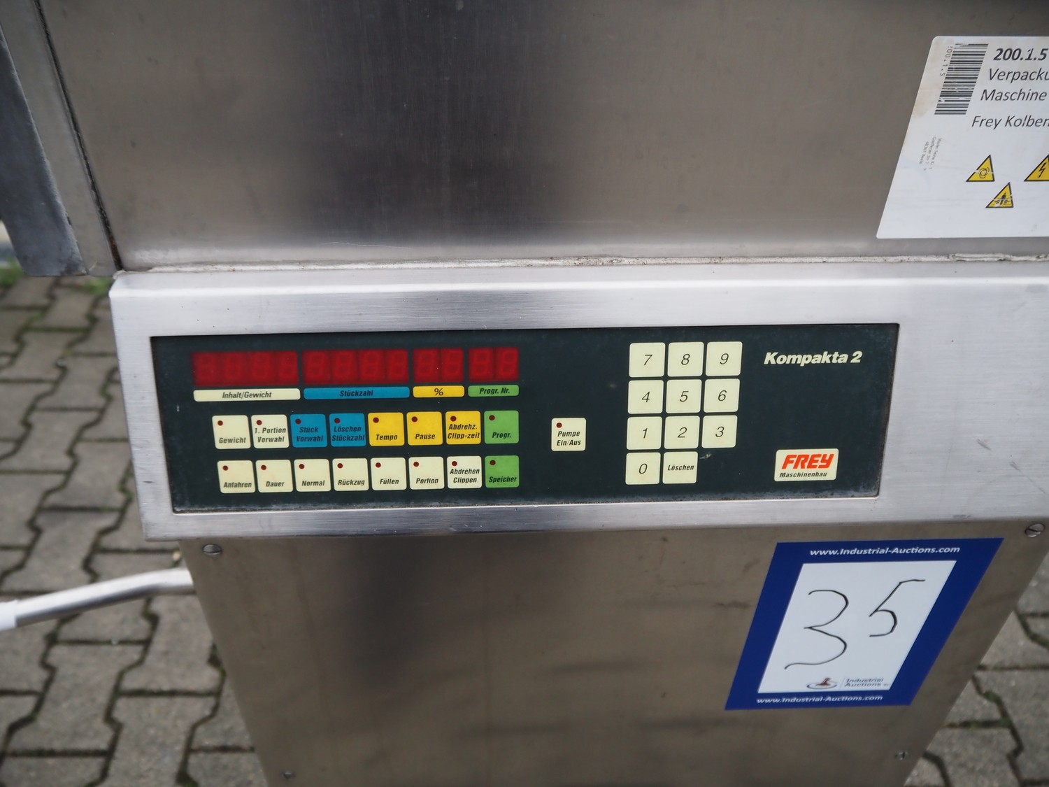 Frey piston filler, type: KOMPAKTA-2 GY, machine number: K2 40 23 06 95, 380 V, 50 Hz, dimensions: 770 mm x 770 mm x 1350 mm.