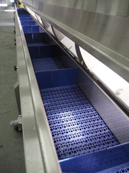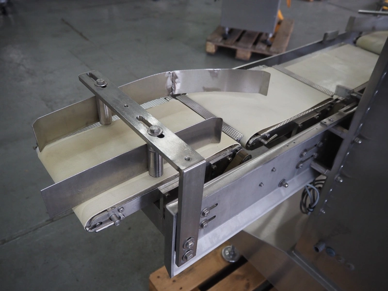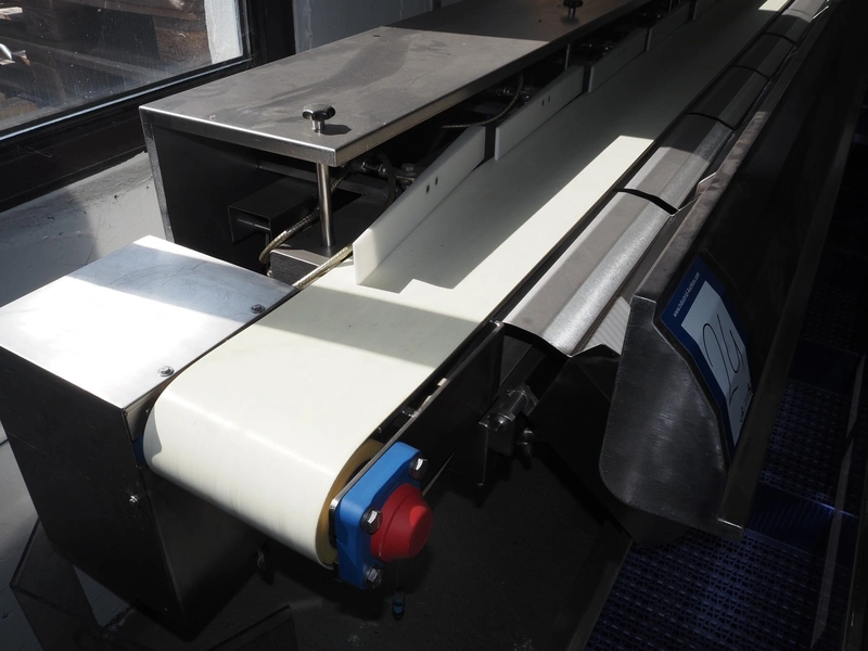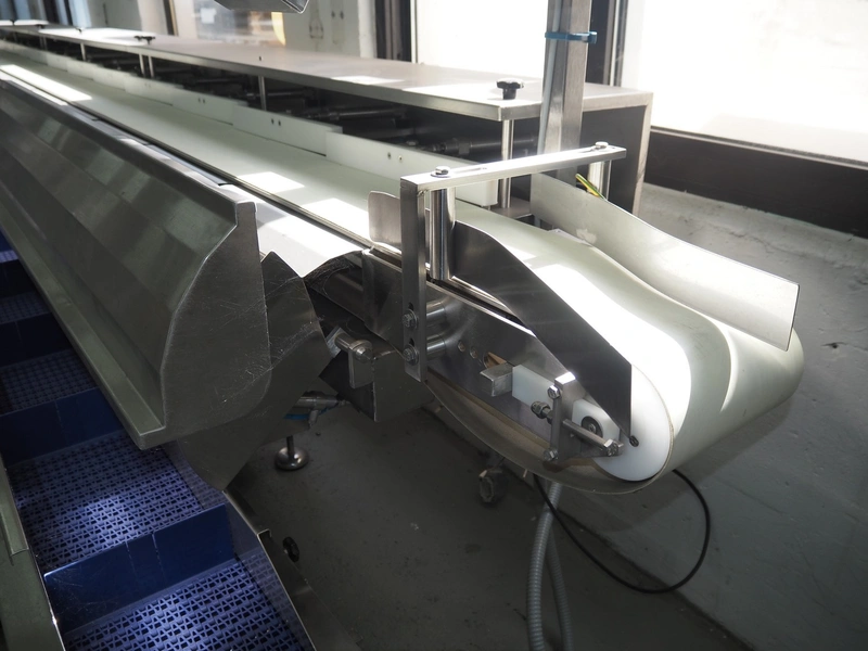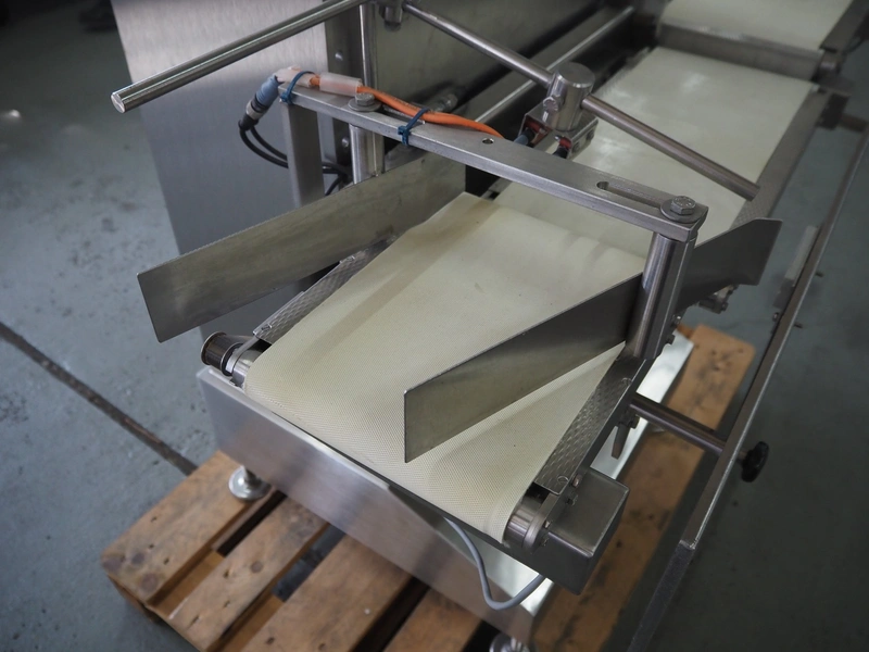 Liebel checkweigher with sorting line, type weigher: USS 12, fabrication number: 09 005, year of construction: 2009, 230/400 V, 50 Hz, 6 A, maximum weight: 500 g, minimum weight: 80 g, capacity: 120 pieces per min, belt width: 200 mm, total dimensions: 1550 mm x 780 mm x 1660 mm, sorting line with 12 ejectors, belt width: 200 mm, total dimensions: 6050 mm x 900 mm x 1400 mm.