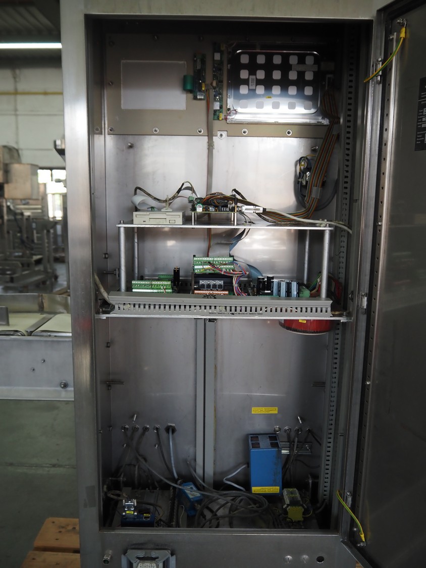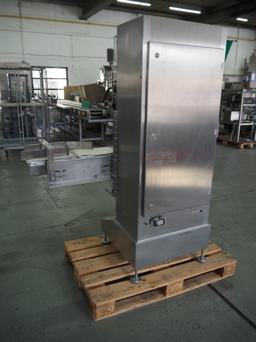Liebel checkweigher with sorting line, type weigher: USS 12, fabrication number: 09 005, year of construction: 2009, 230/400 V, 50 Hz, 6 A, maximum weight: 500 g, minimum weight: 80 g, capacity: 120 pieces per min, belt width: 200 mm, total dimensions: 1550 mm x 780 mm x 1660 mm, sorting line with 12 ejectors, belt width: 200 mm, total dimensions: 6050 mm x 900 mm x 1400 mm.