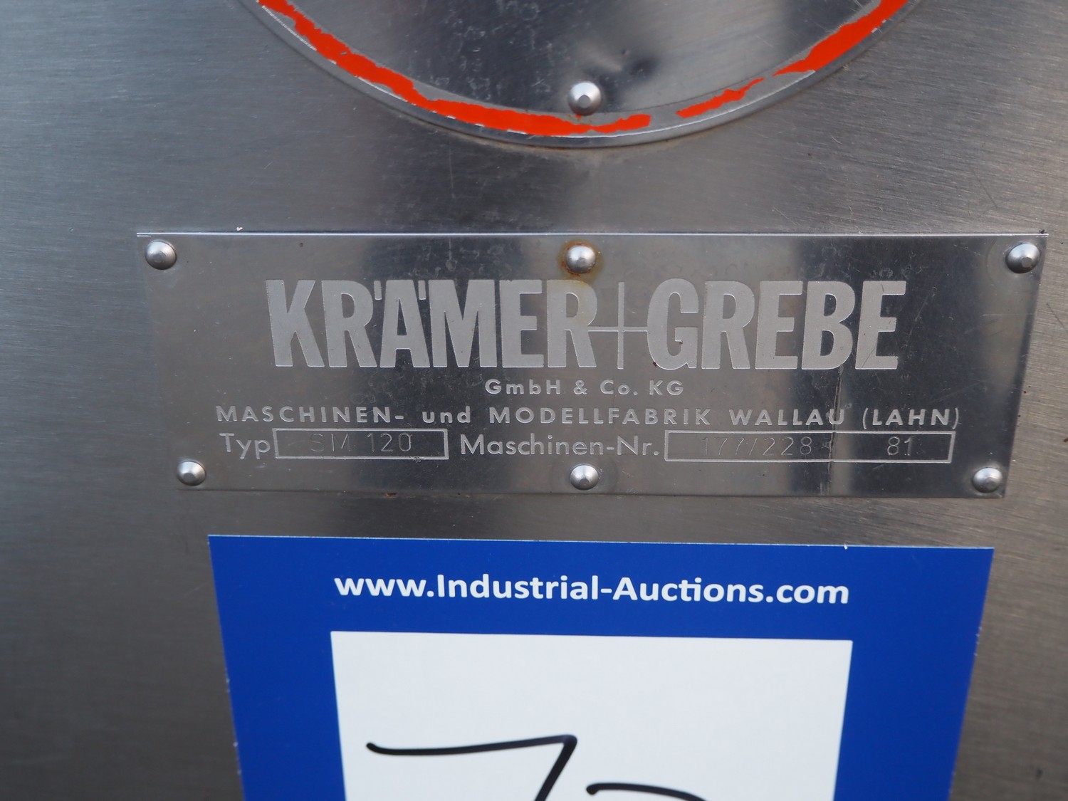 Kramer + Grebe GmbH & Co.KG cutter with rejector, type: SM 120, machine number: 1777228 81, diameter bowl: 1100 mm, total dimensions: 2100 mm x 1300 mm x 1500 mm.