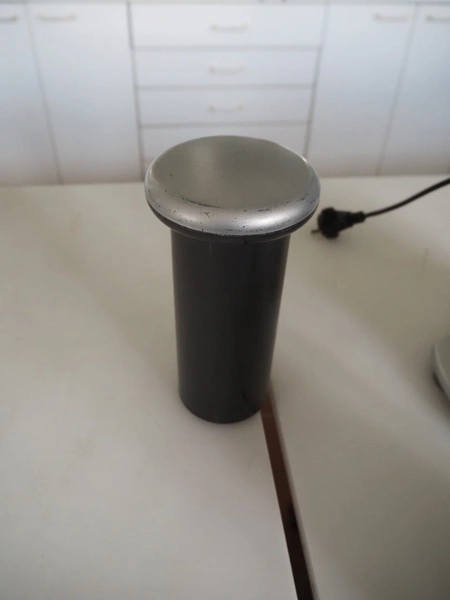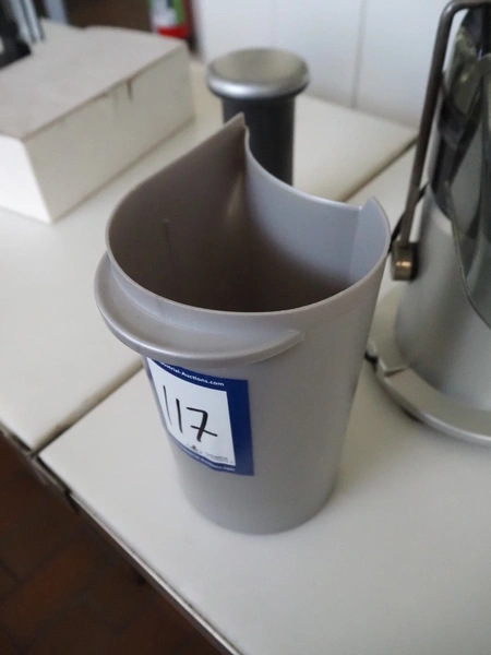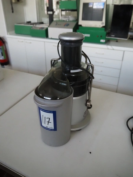 Gastroback juicer, dimensions pulp bin: 140 mm x 110 mm x 200 mm, total dimensions: 350 mm x 200 mm x 450 mm.