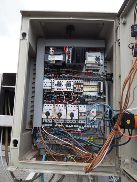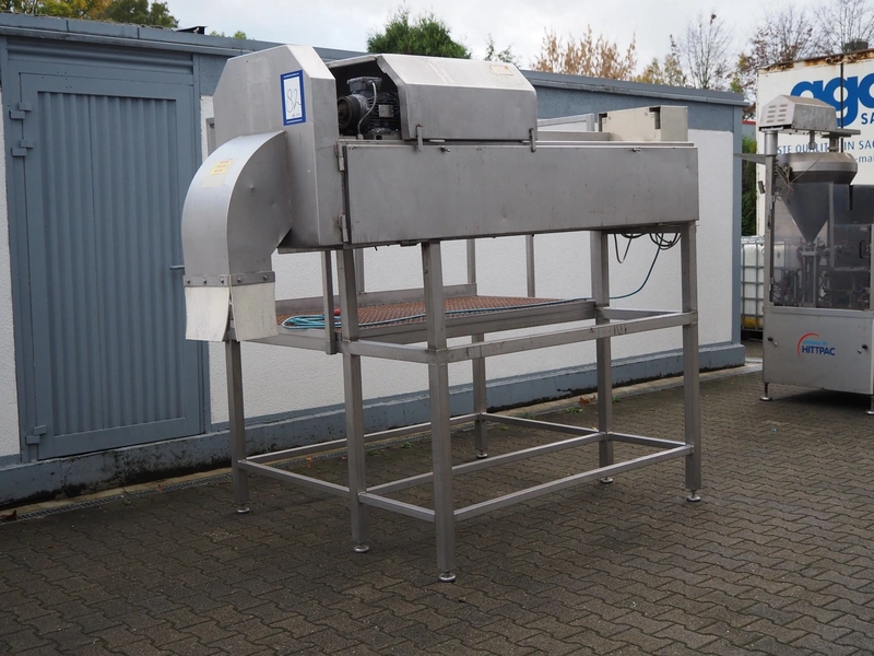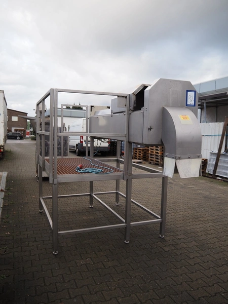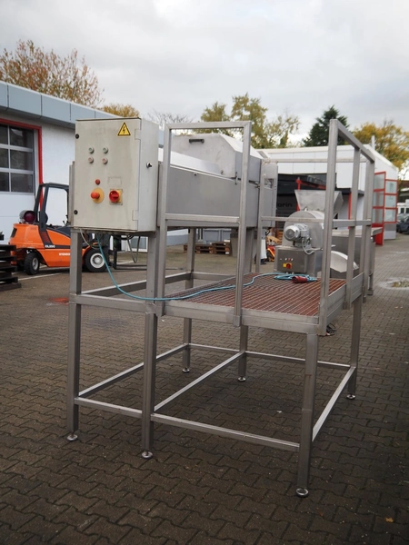 Slicer, s/s frame, plastic infeed belt, belt width: (2x) 90 mm, diameter knive: 460 mm, length knives: 100 mm, working height platform: 1060 mm, total dimensions: 2900 mm x 1800 mm x 2200 mm.