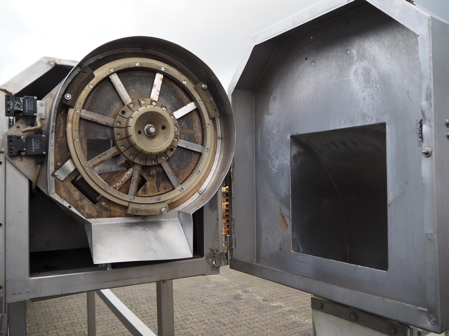 Slicer, s/s frame, plastic infeed belt, belt width: (2x) 90 mm, diameter knive: 460 mm, length knives: 100 mm, working height platform: 1060 mm, total dimensions: 2900 mm x 1800 mm x 2200 mm.