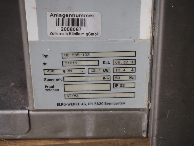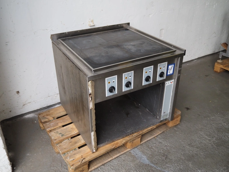 ELRO-WERKE AG electric 4-pit stove, type: HE-535-103, number: 51611, year of construction: 09.12.93, 400 V, 3 Ph, 50 Hz, 18.4 A, 12.4 kW, dimensions: 850 mm x 800 mm x 750 mm.