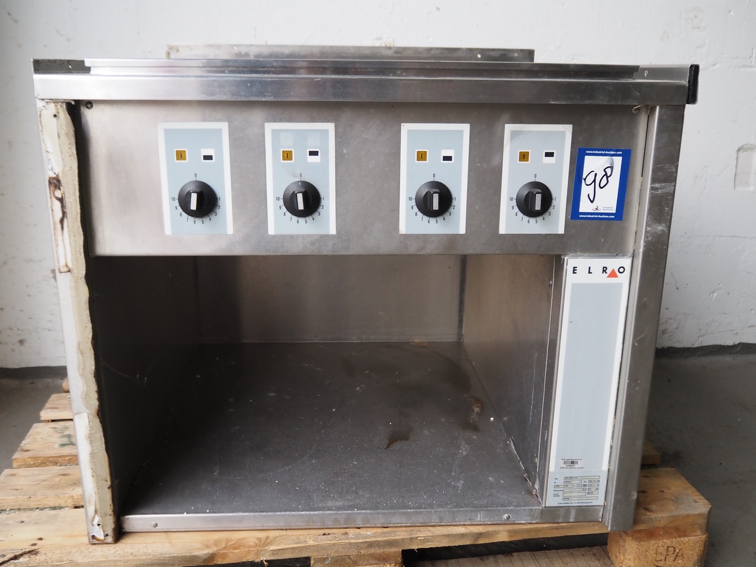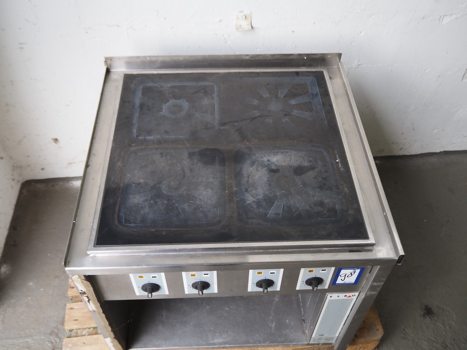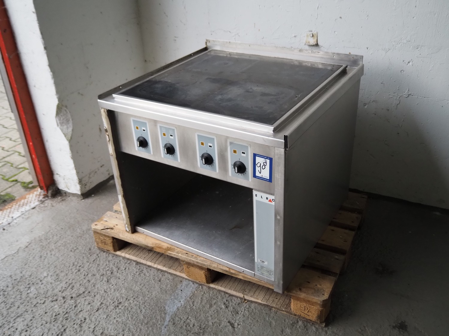 ELRO-WERKE AG electric 4-pit stove, type: HE-535-103, number: 51611, year of construction: 09.12.93, 400 V, 3 Ph, 50 Hz, 18.4 A, 12.4 kW, dimensions: 850 mm x 800 mm x 750 mm.