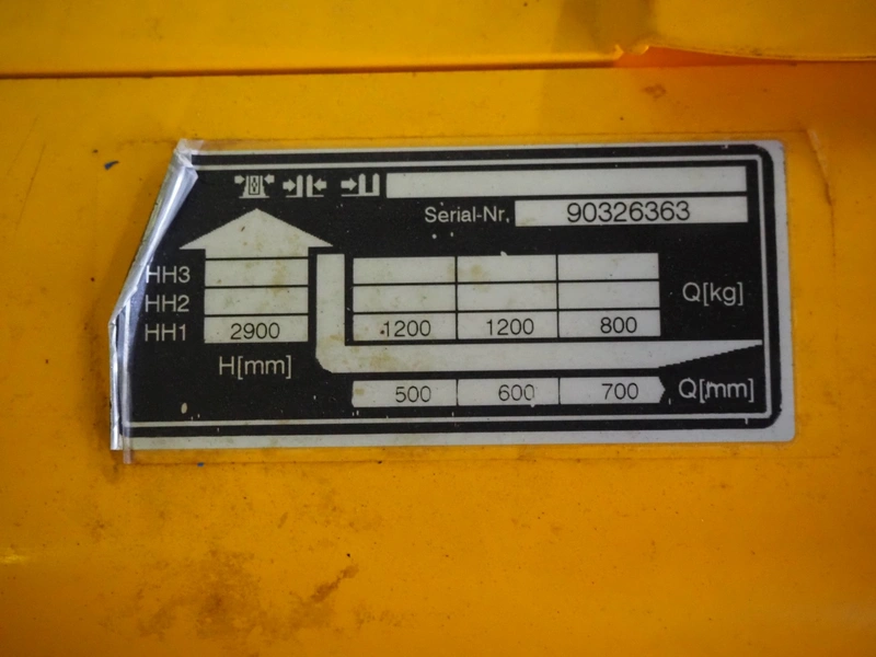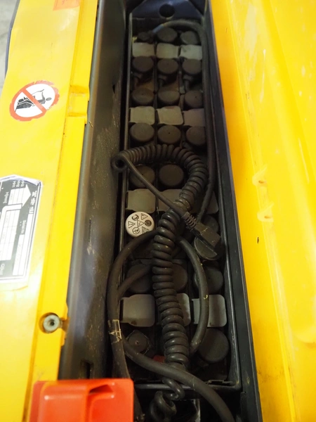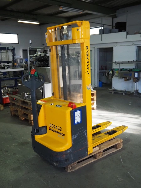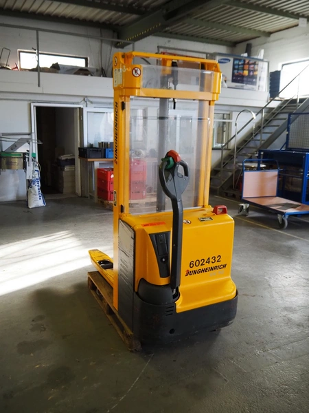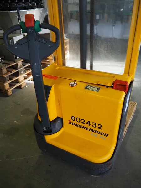 Jungheinrich electric pallet lifter, type: EJC 112, serial number: 90326363, capacity: 1200 kg, fork length: 1150 mm, total dimensions: 1900 mm x 800 mm x 1900 mm.