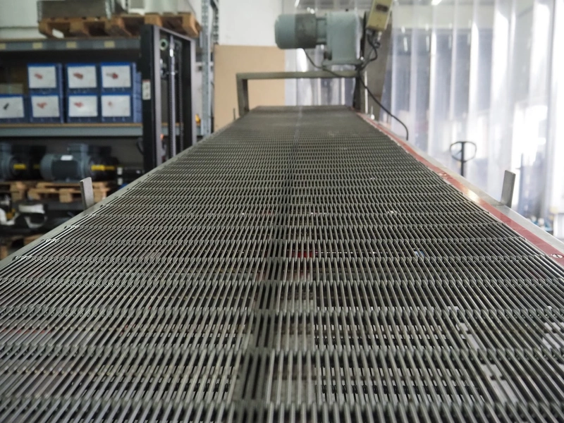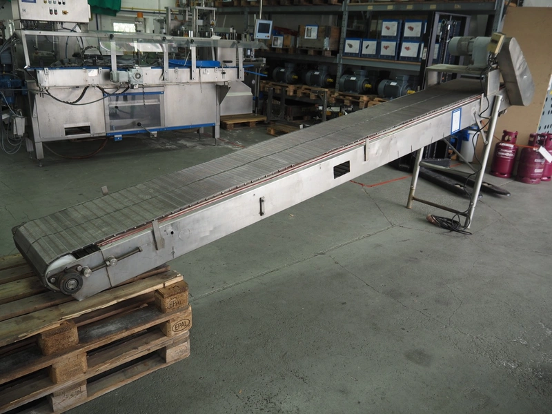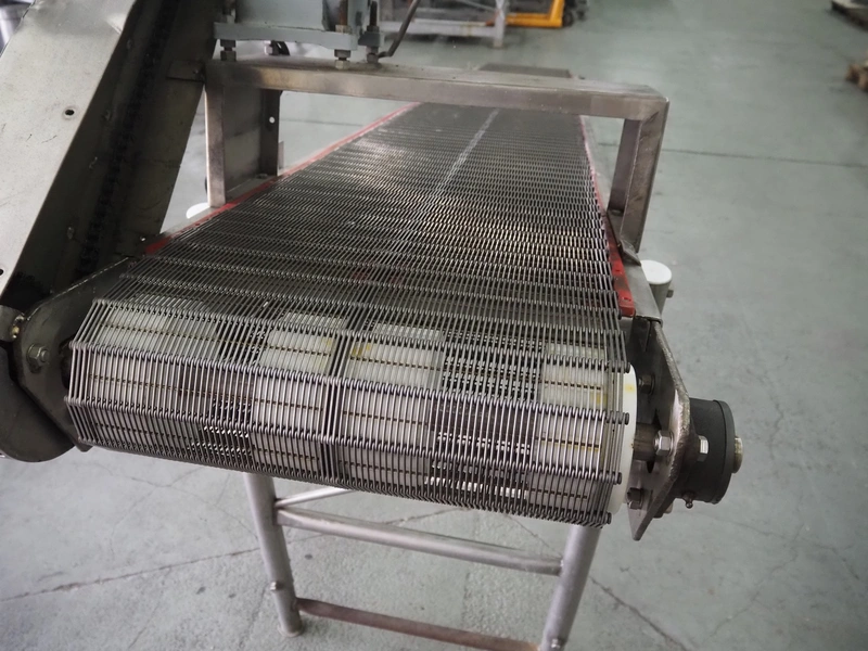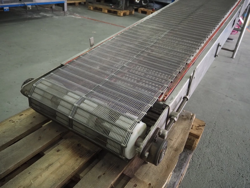 Transport belt, s/s mesh belt, belt width: 500 mm, total dimensions: 4300 mm x 820 mm x 1700 mm.