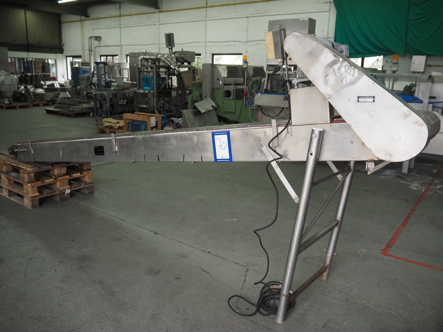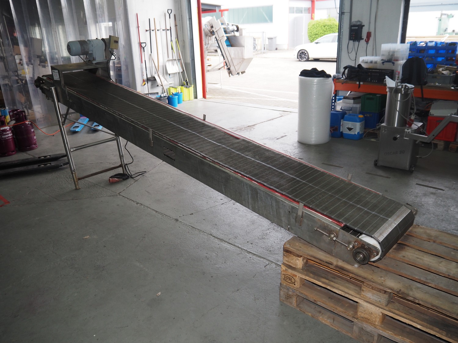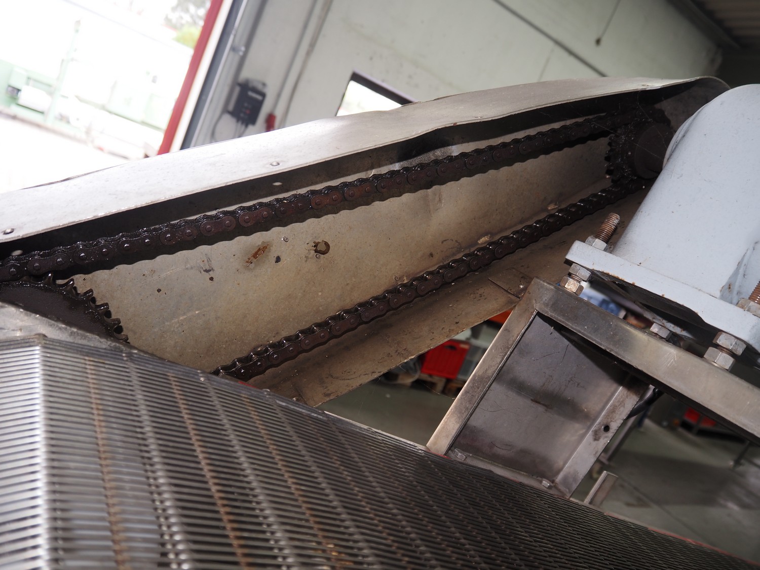 Transport belt, s/s mesh belt, belt width: 500 mm, total dimensions: 4300 mm x 820 mm x 1700 mm.