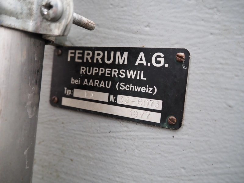 Ferrum A.G. pit remover, type: FA, number: 35-6073, year of construction: 1977, steel belt, belt width: 480 mm, working width: 440 mm, 40 destoning plates, 50 holes each, diameter each hole 32 mm, total dimensions: 3100 mm x 1500 mm x 2480 mm.