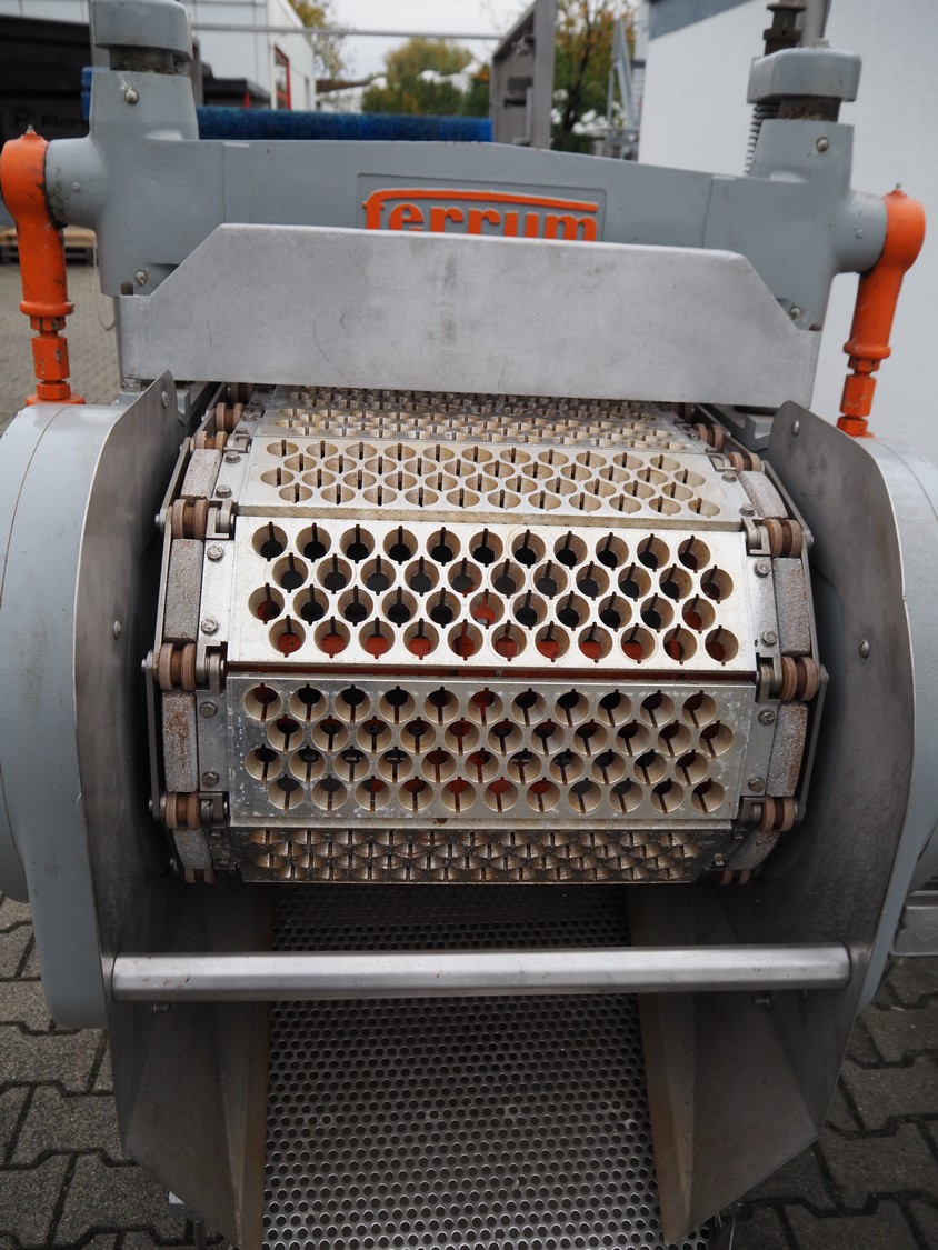 Ferrum A.G. pit remover, type: FA, number: 35-6073, year of construction: 1977, steel belt, belt width: 480 mm, working width: 440 mm, 40 destoning plates, 50 holes each, diameter each hole 32 mm, total dimensions: 3100 mm x 1500 mm x 2480 mm.