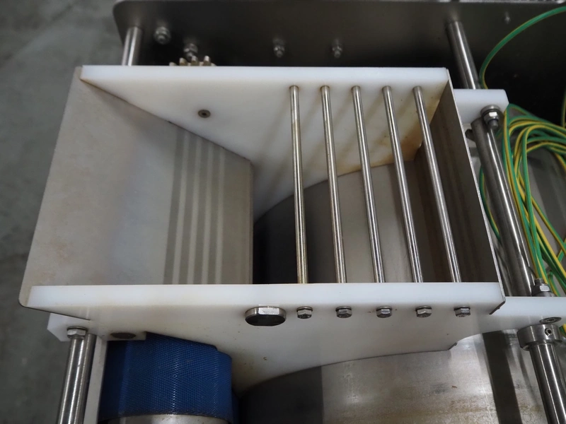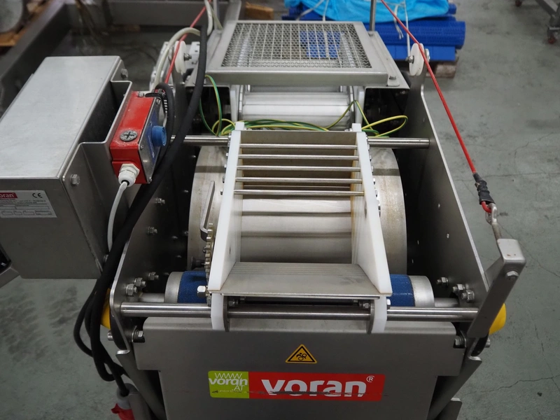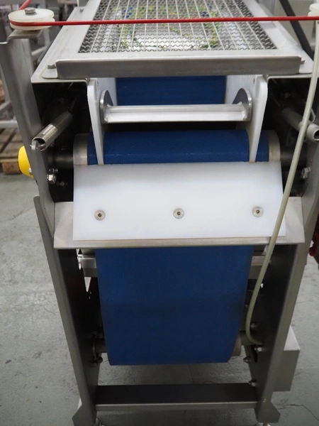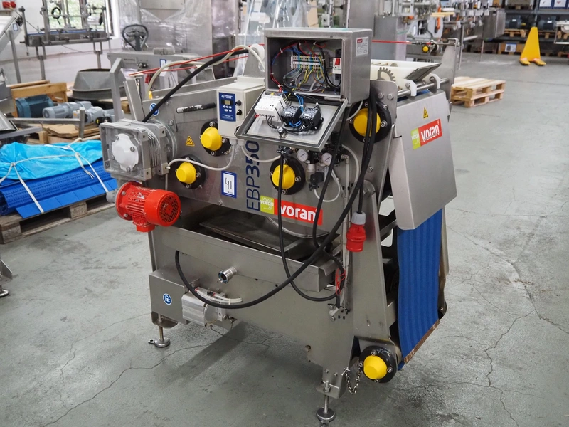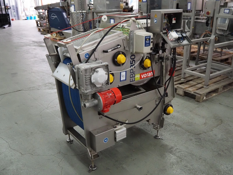 Voran belt press, type: EBP350, serial number: M0003405F/04/00003, 400 V, 50 Hz, 0.49 kW, plastic belt, belt width: 360 mm, s/s rollers, roller width: 360 mm, total dimensions: 1300 mm x 750 mm x 1450 mm.