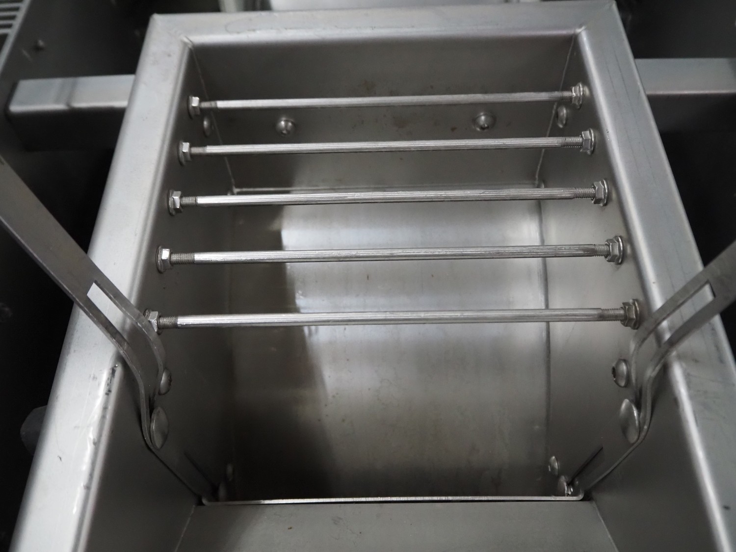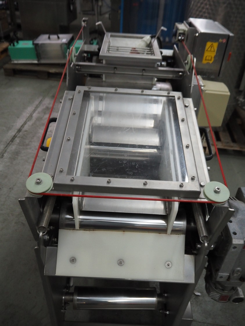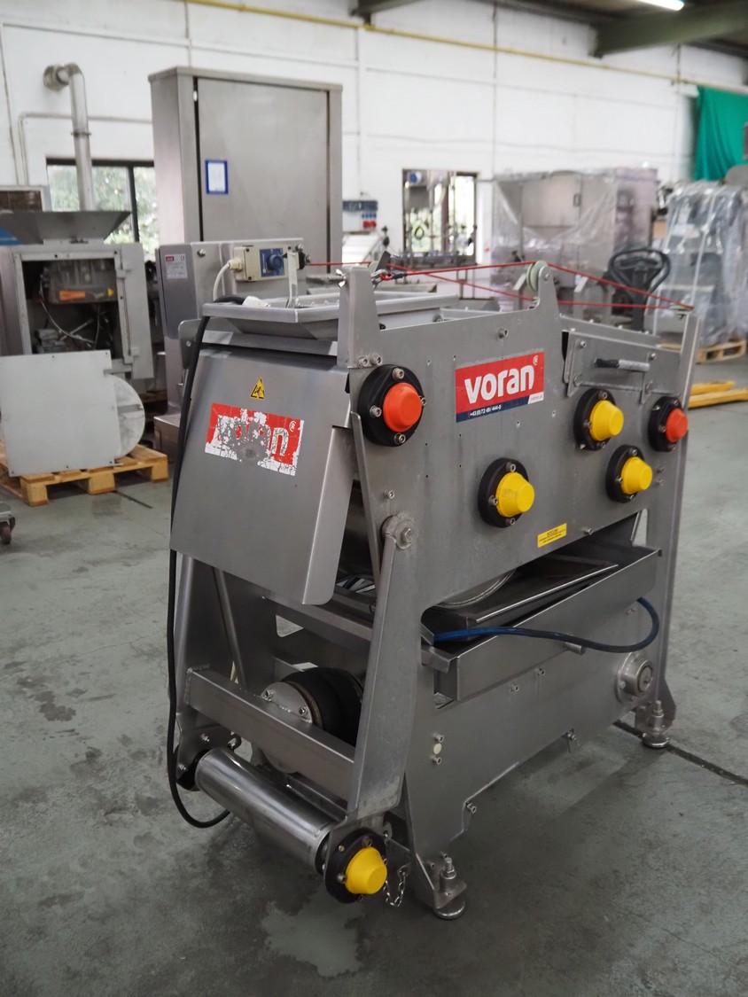 Voran belt press, type: EBP350, machine number: 1640101214, 400 V, 50 Hz, 0.49 kW, s/s rollers, roller width: 360 mm, total dimensions: 1300 mm x 750 mm x 1450 mm. Missing belt.