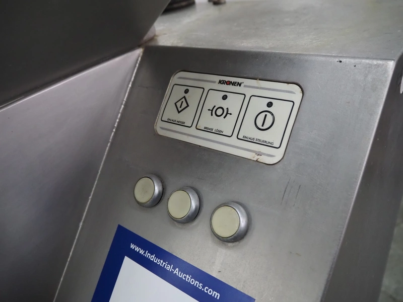 Kronen slicer, type: ST 22, serial number: 170, year of construction: 1998, 400 V, 3 Ph, 50 Hz, diameter knife: 470 mm, total dimensions: 700 mm x 800 mm x 1350 mm. Technical condition unknown.