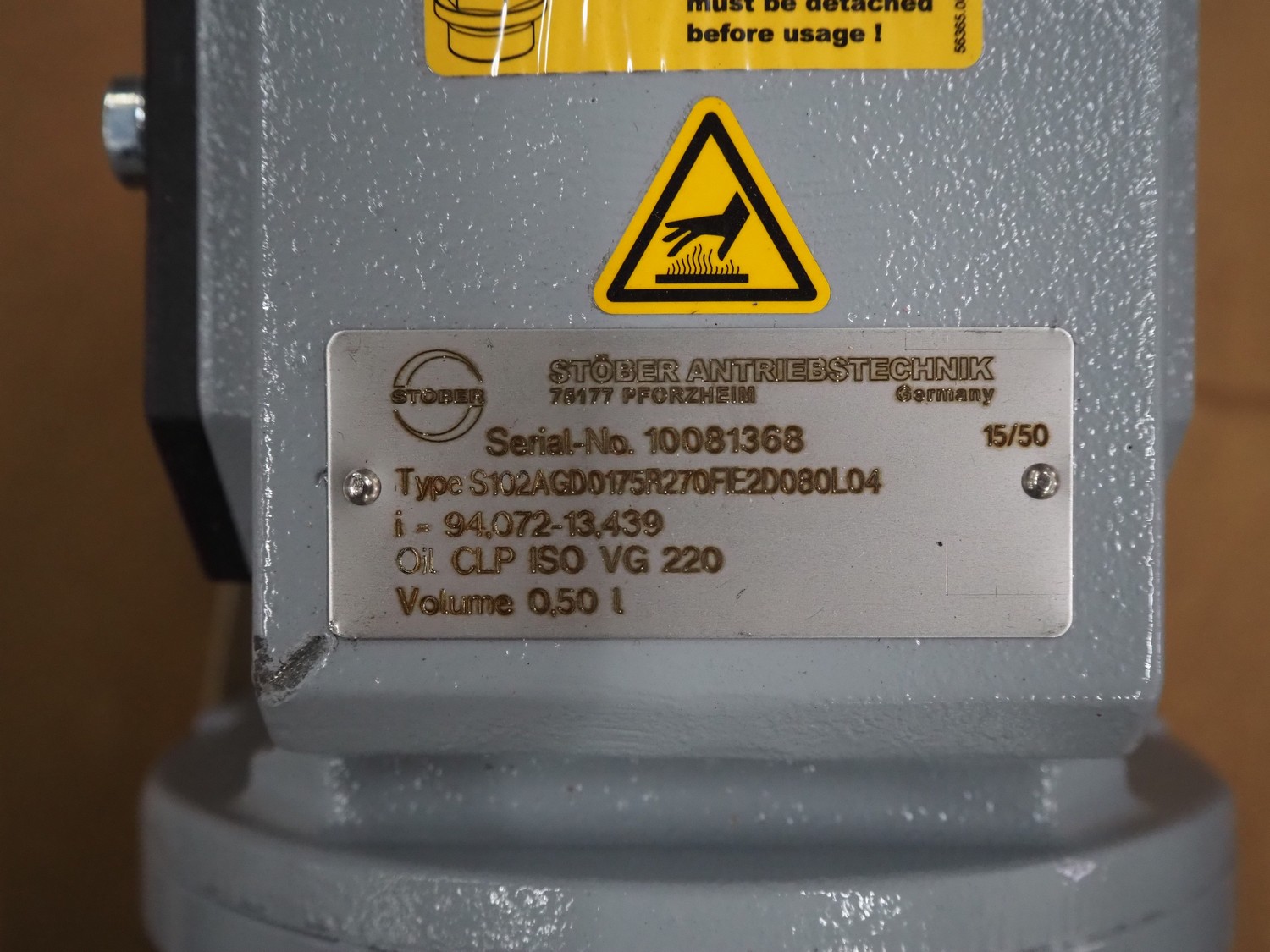 Stöber Antriebstechnik motor, type: S102AGD0175A270FIED080L04, serial number: 10081368, dimensions: 650 mm x 270 mm x 220 mm.