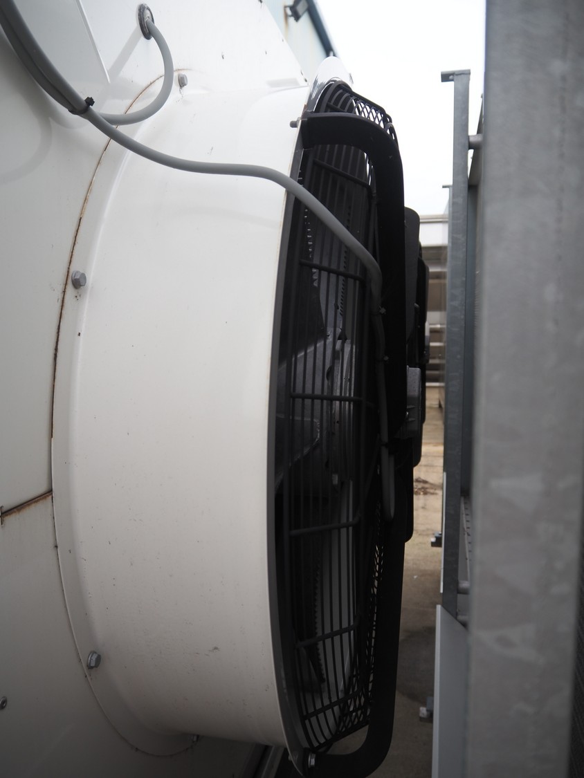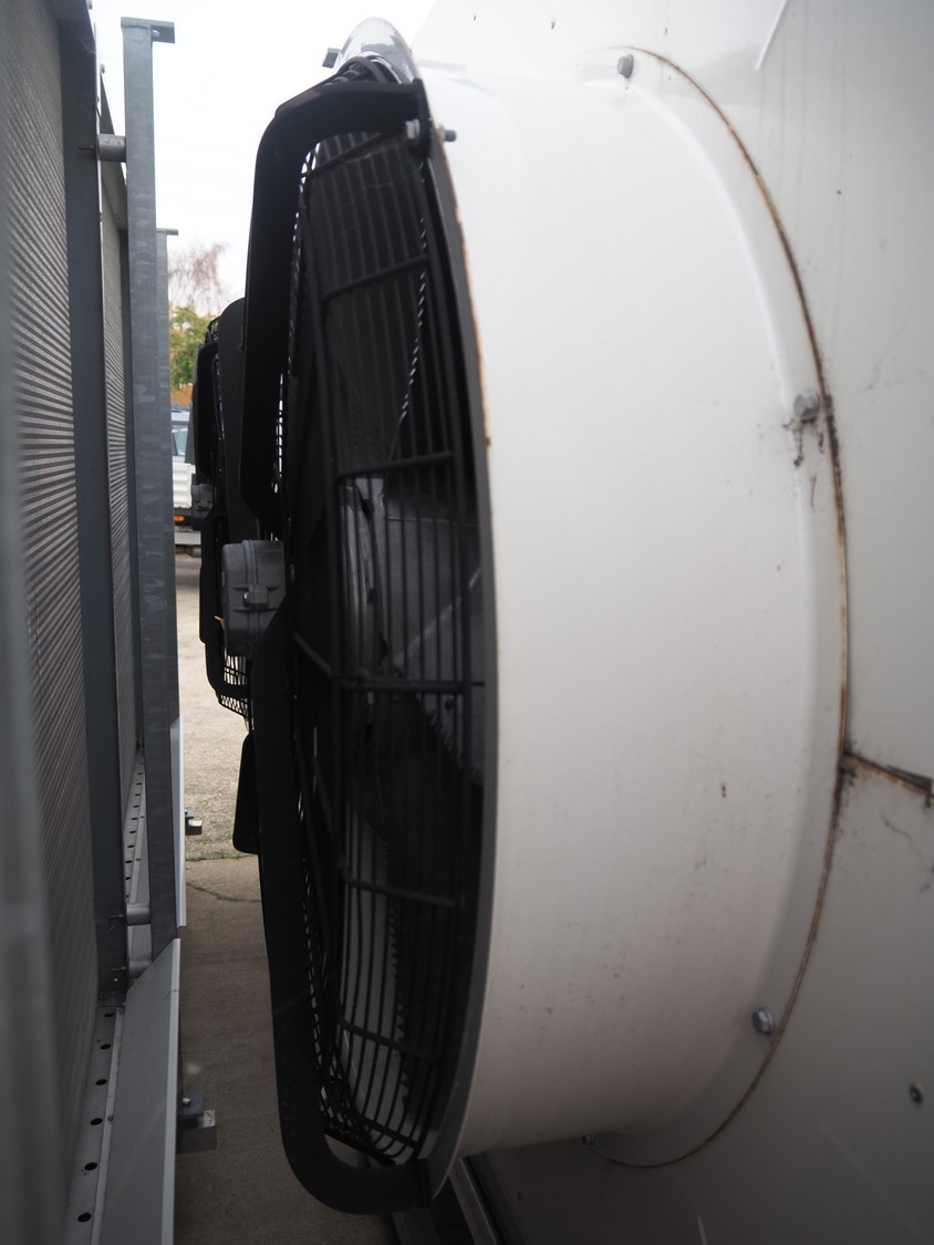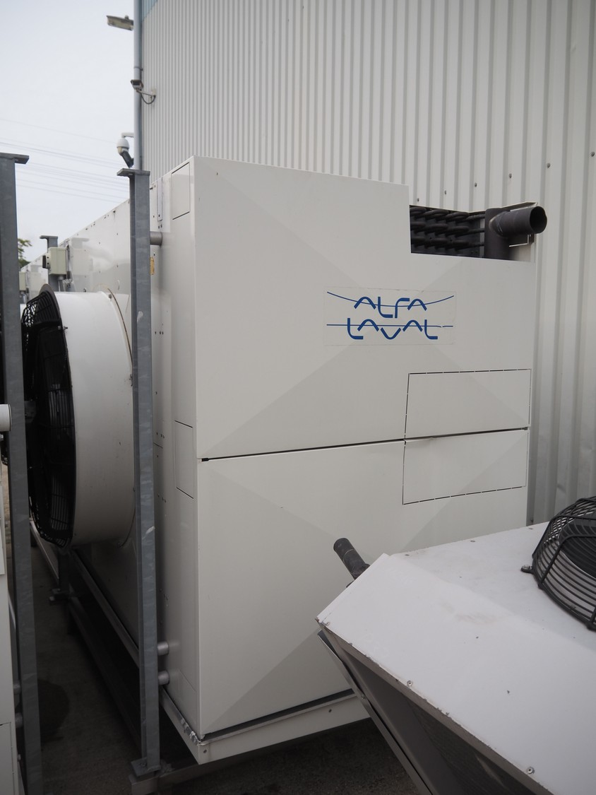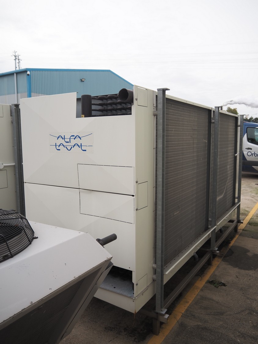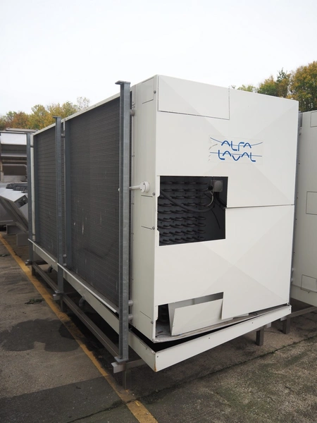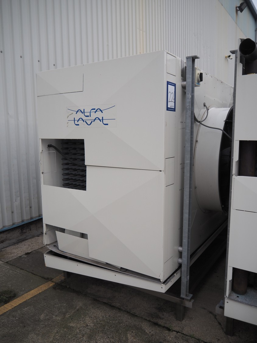Alfa Laval evaporator, 2 fans, model: ISO72-210CU-W6-AL6.0-1H-L-FA0 SW/GSE/CB/12/MF/E1, year of construction: 2015, Coil TS: 110-60 °C, PS: 10 bar, PT: 14 bar, dimensions: 4000 mm x 1700 mm x 2100 mm.