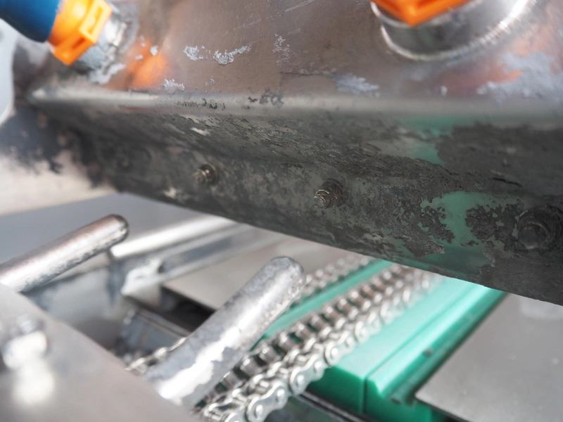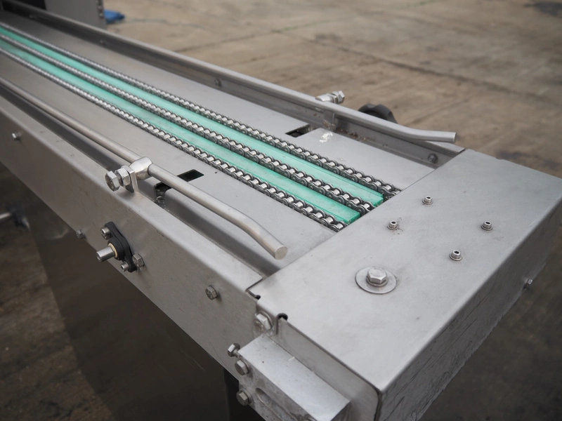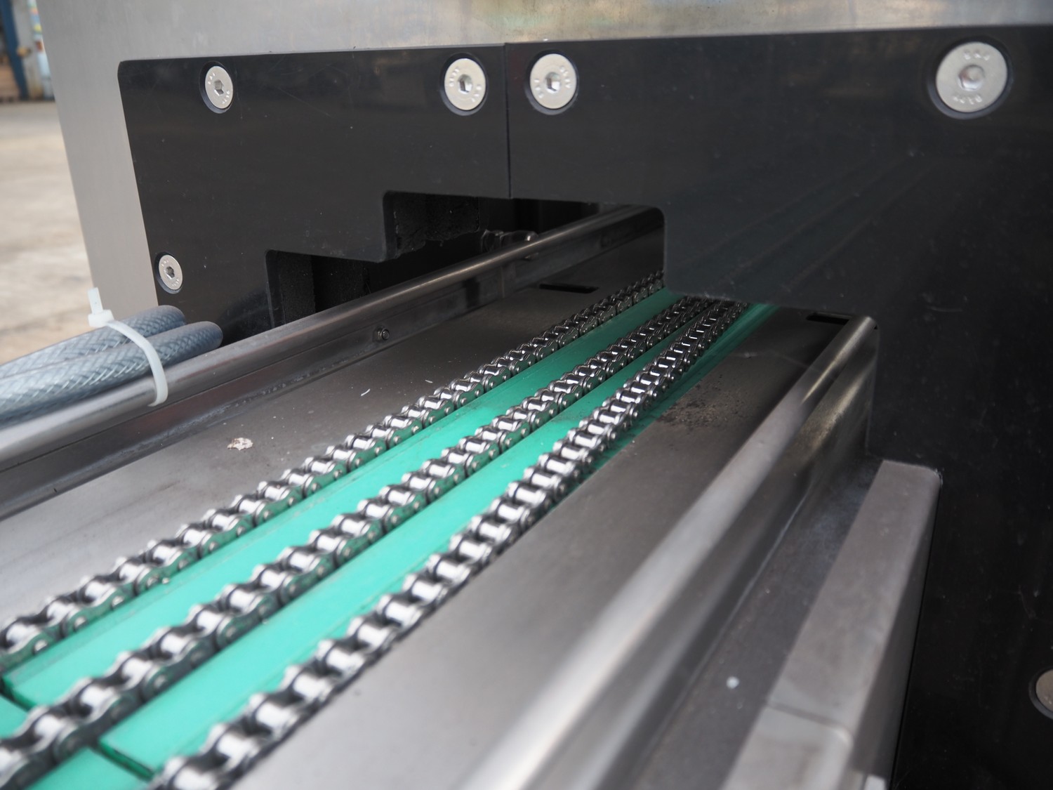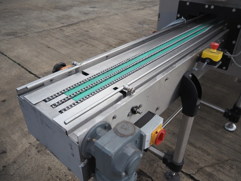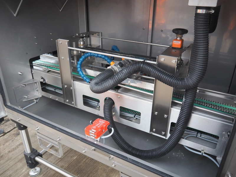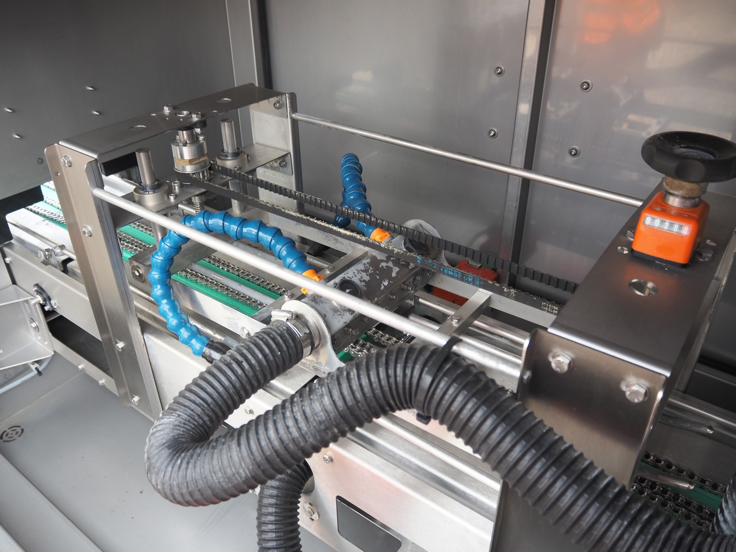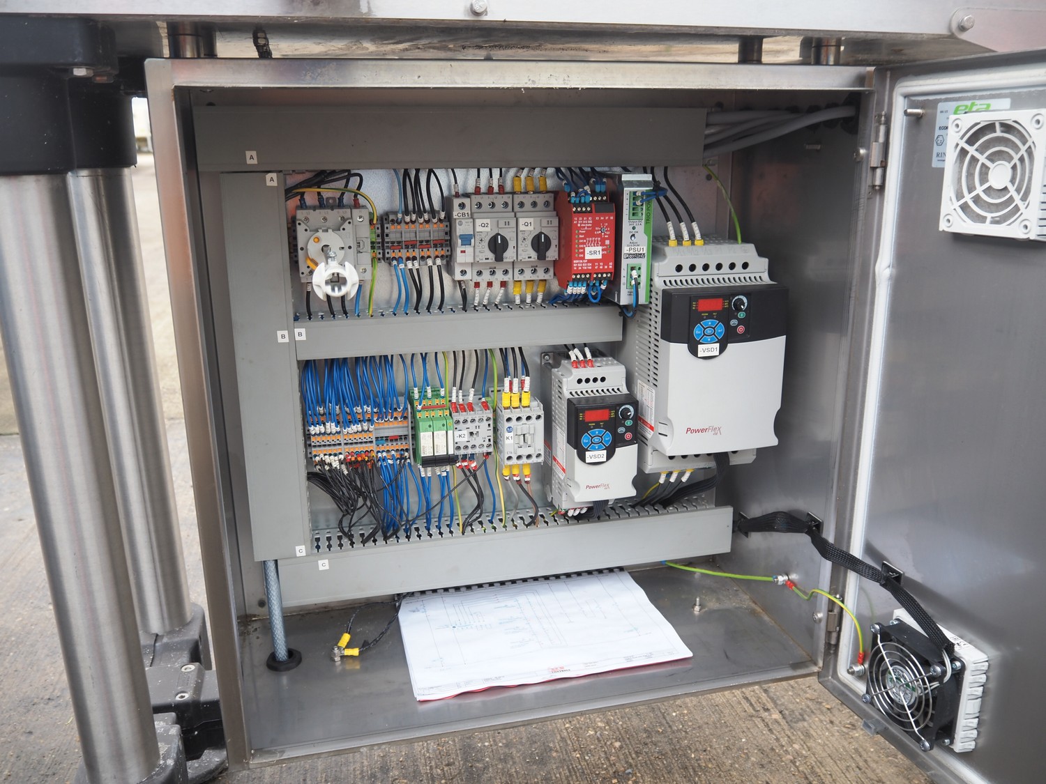 Air Control Industries drying tunnel, type: LNL-BESP025, serial number: S-00106348, year of construction: 2015, 380/420 V, 50/60 Hz, 5.5 kW, s/s chain belt, belt width: 160 mm, clearance: 300 mm x 100 mm, blower width: 250 mm, total dimensions: 4550 mm x 1050 mm x 2150 mm.