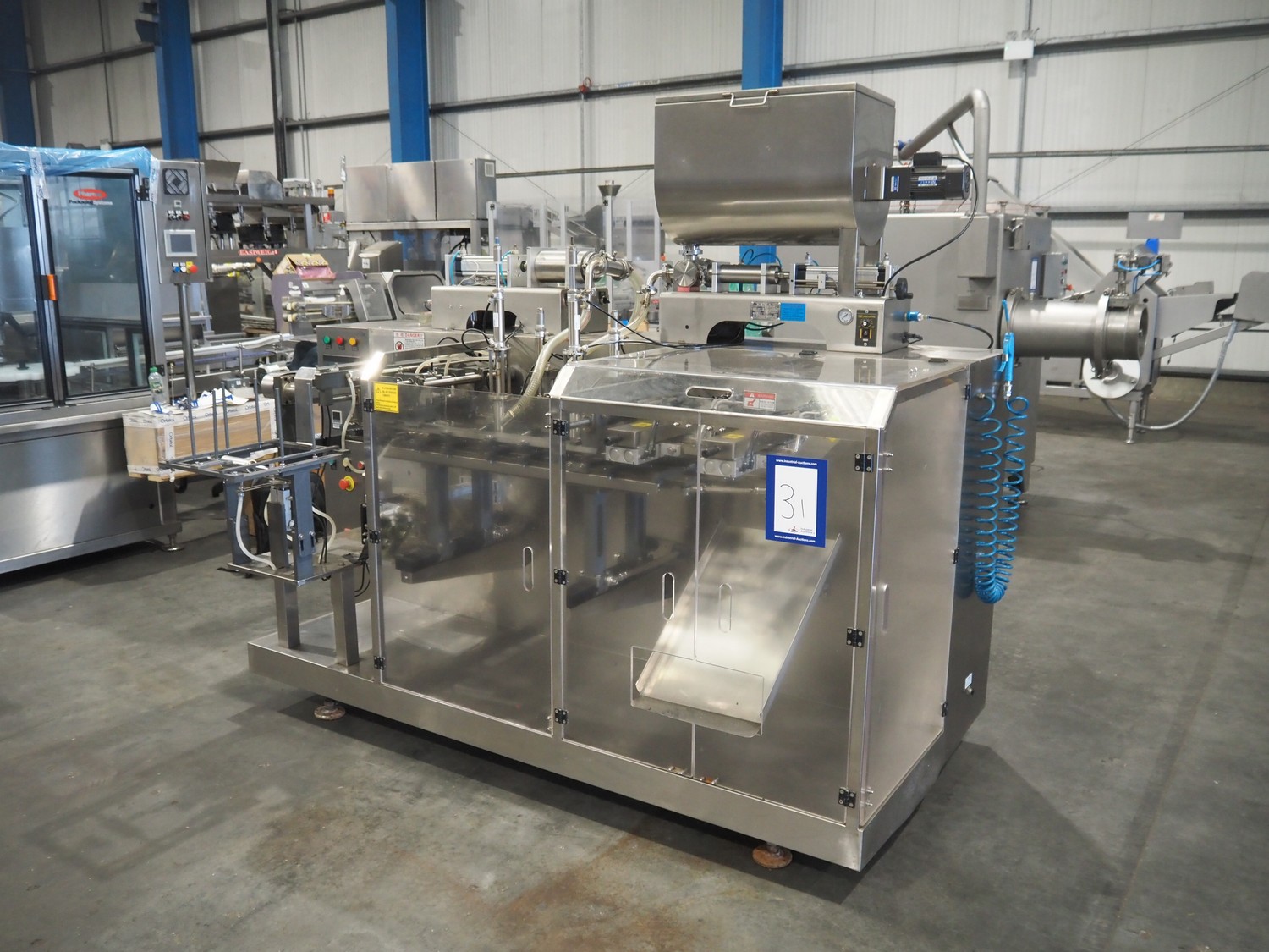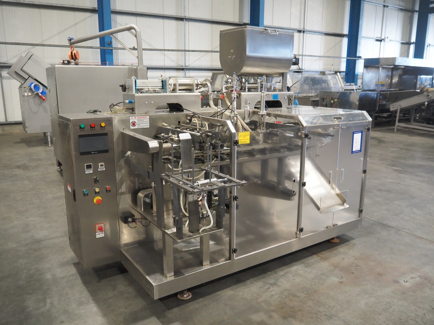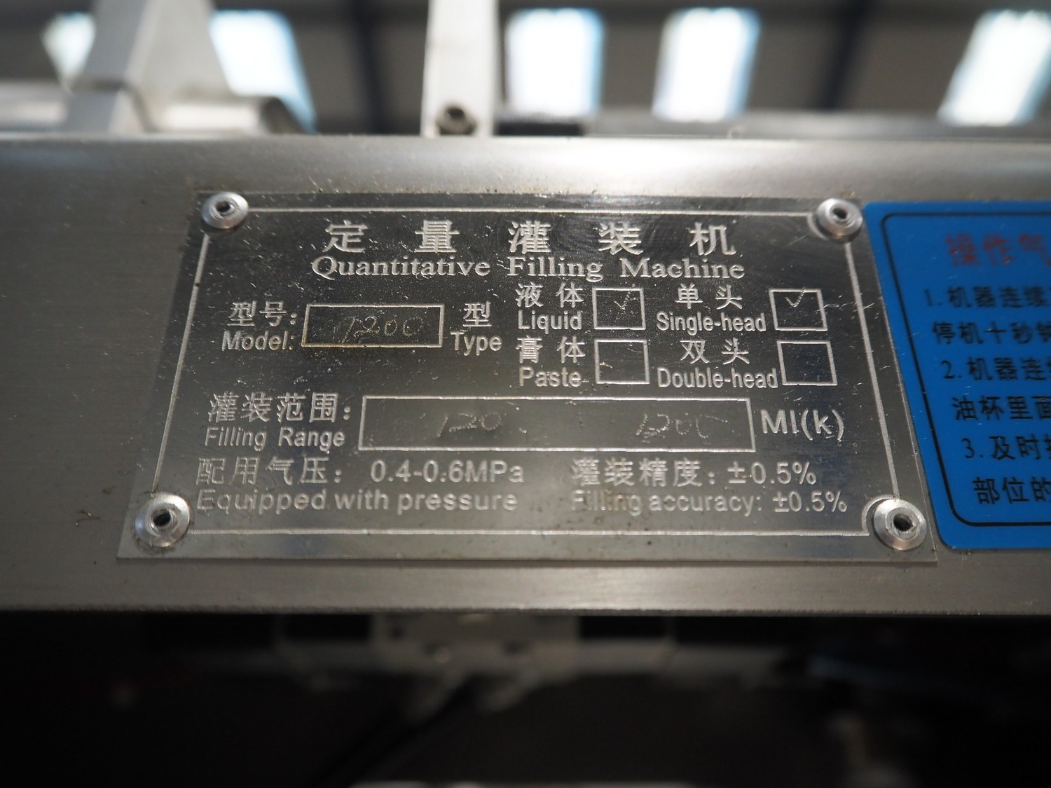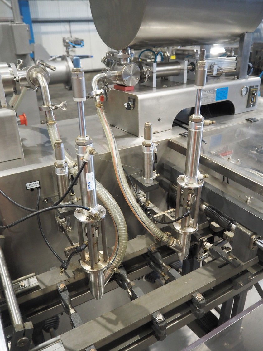 Quantitative Filling Machine pouch filling machine for liquids, model: 1200, filling range: 120 - 1200 ml, pouch dimensions: 200 mm x 300 mm, total dimensions: 2500 mm x 1500 mm x 2100 mm.