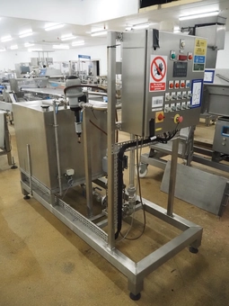 S/s tank with pump, inside dimensions: 780 mm x 780 mm x 800 mm, total dimensions: 2200 mm x 830 mm x 1750 mm.1 bidLot is closed