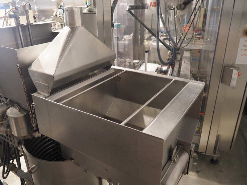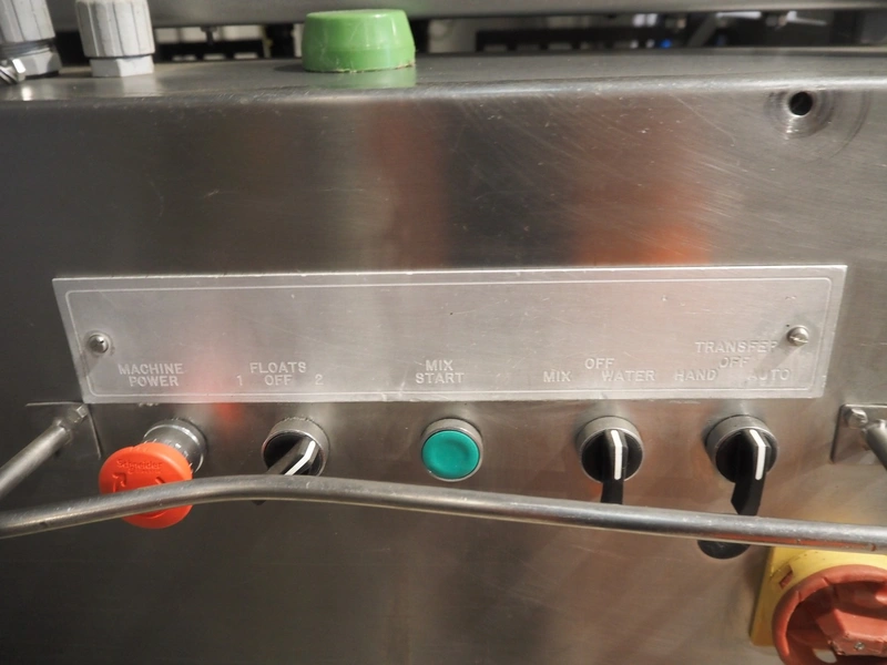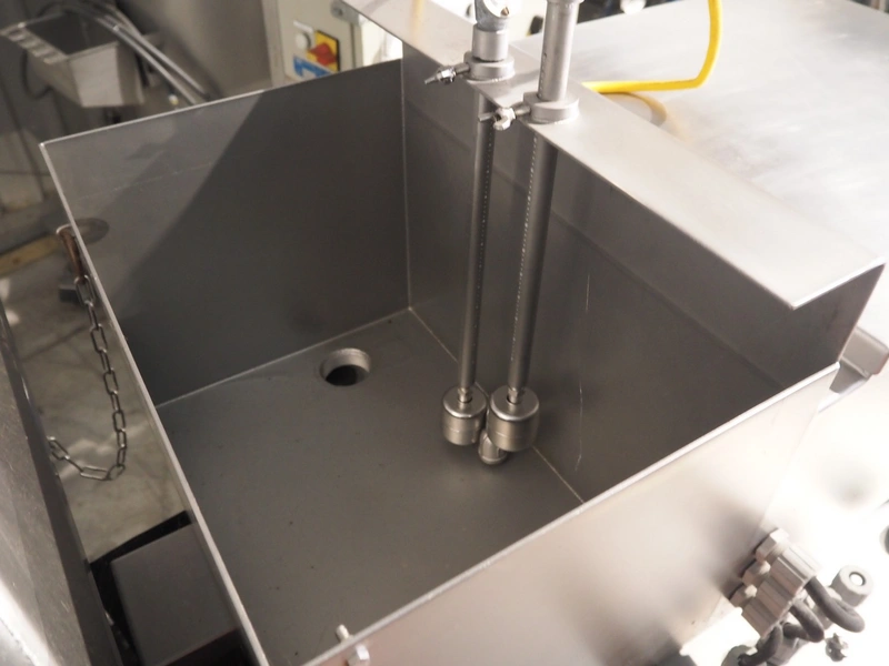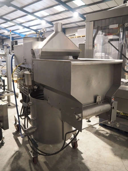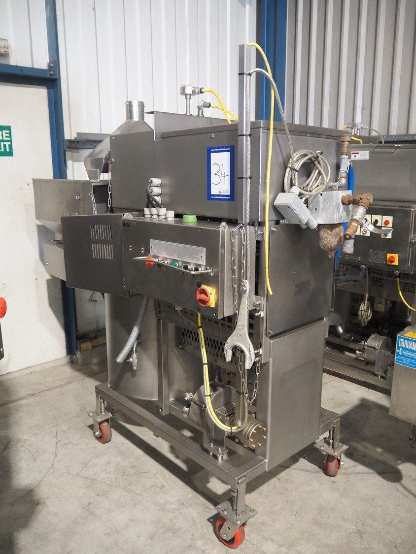 JBT Stein mobile tempura batter mixer, model: TM-3, serial number: 169, s/s mesh belt, belt width: 360 mm, tub dimensions: Ø 600 mm x 600 mm, total dimensions: 2100 mm x 850 mm x 1880 mm.