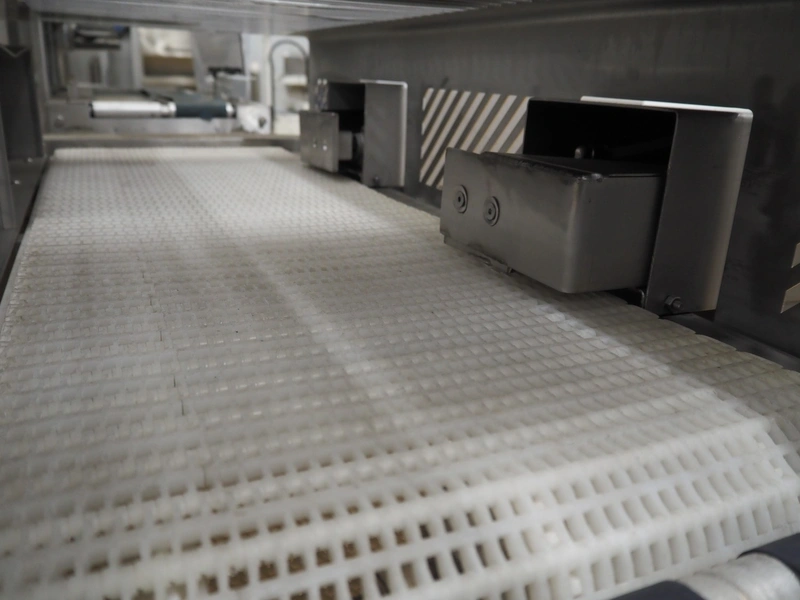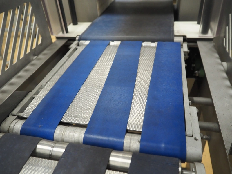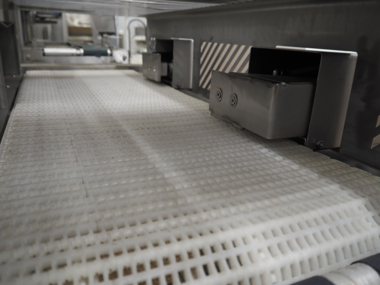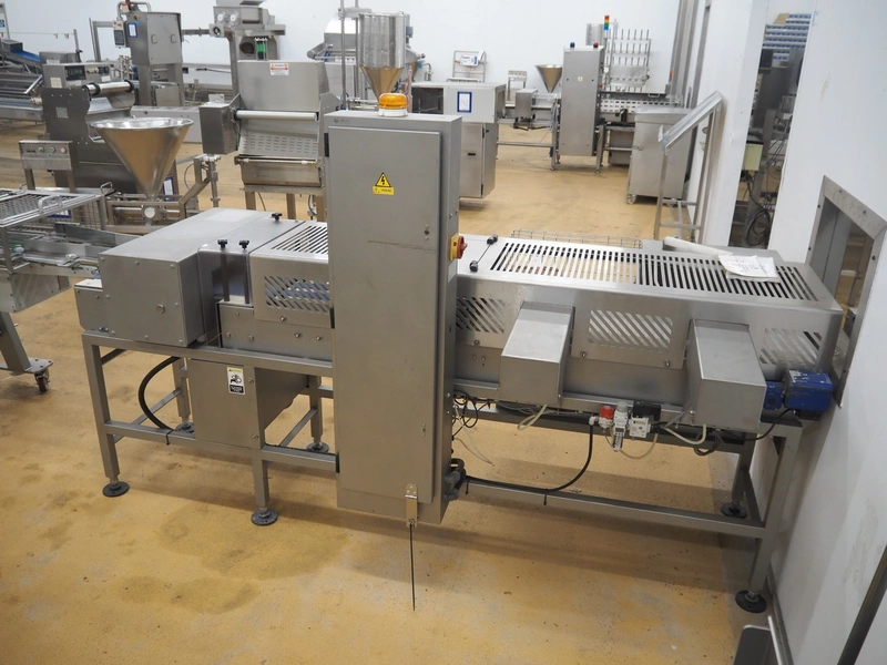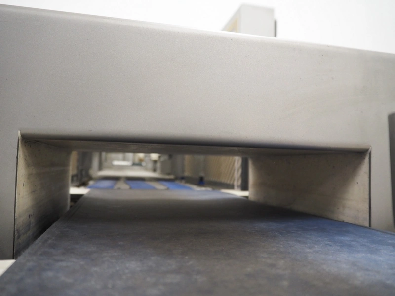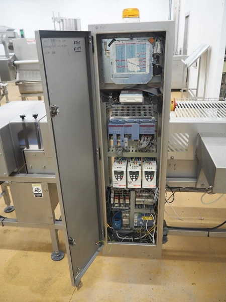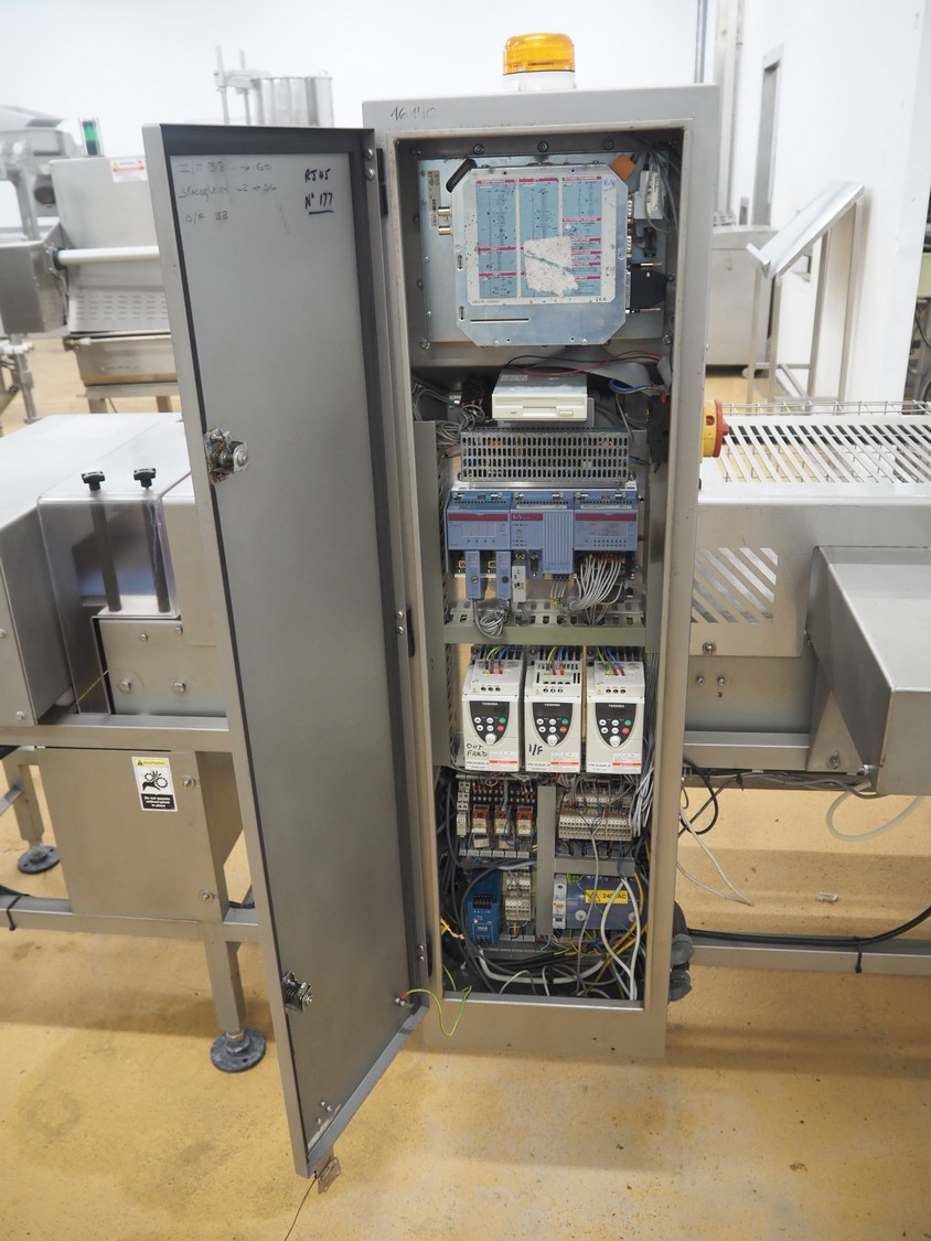 Cintex metal detector and checkweigher with rejector, clearance: 300 mm x 70 mm, plastic belt, belt width: 280 mm, 200 mm, 340 mm, total dimensions: 2550 mm x 1200 mm x 1550 mm.