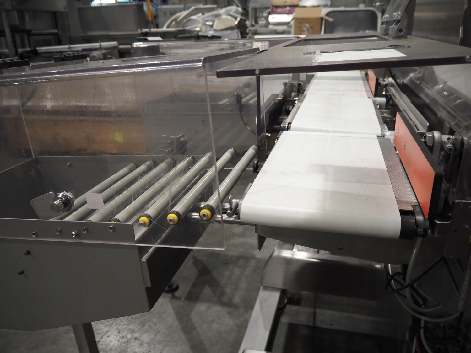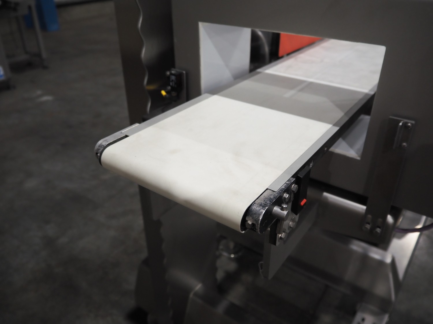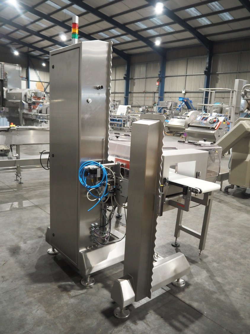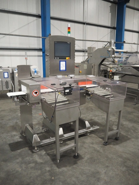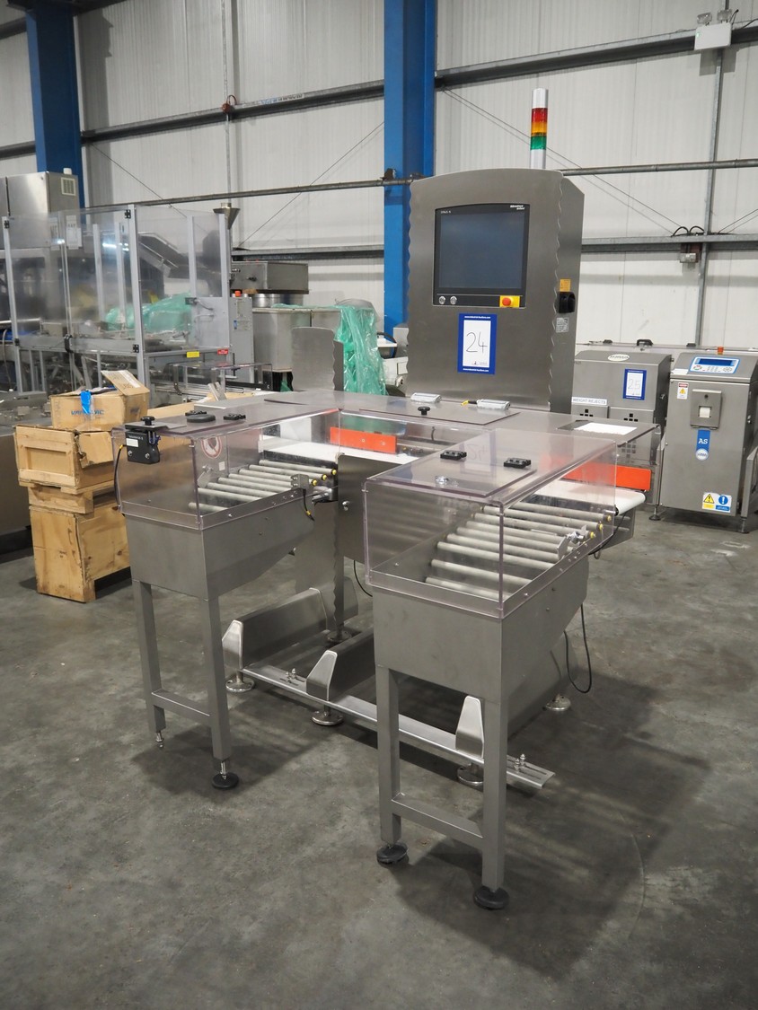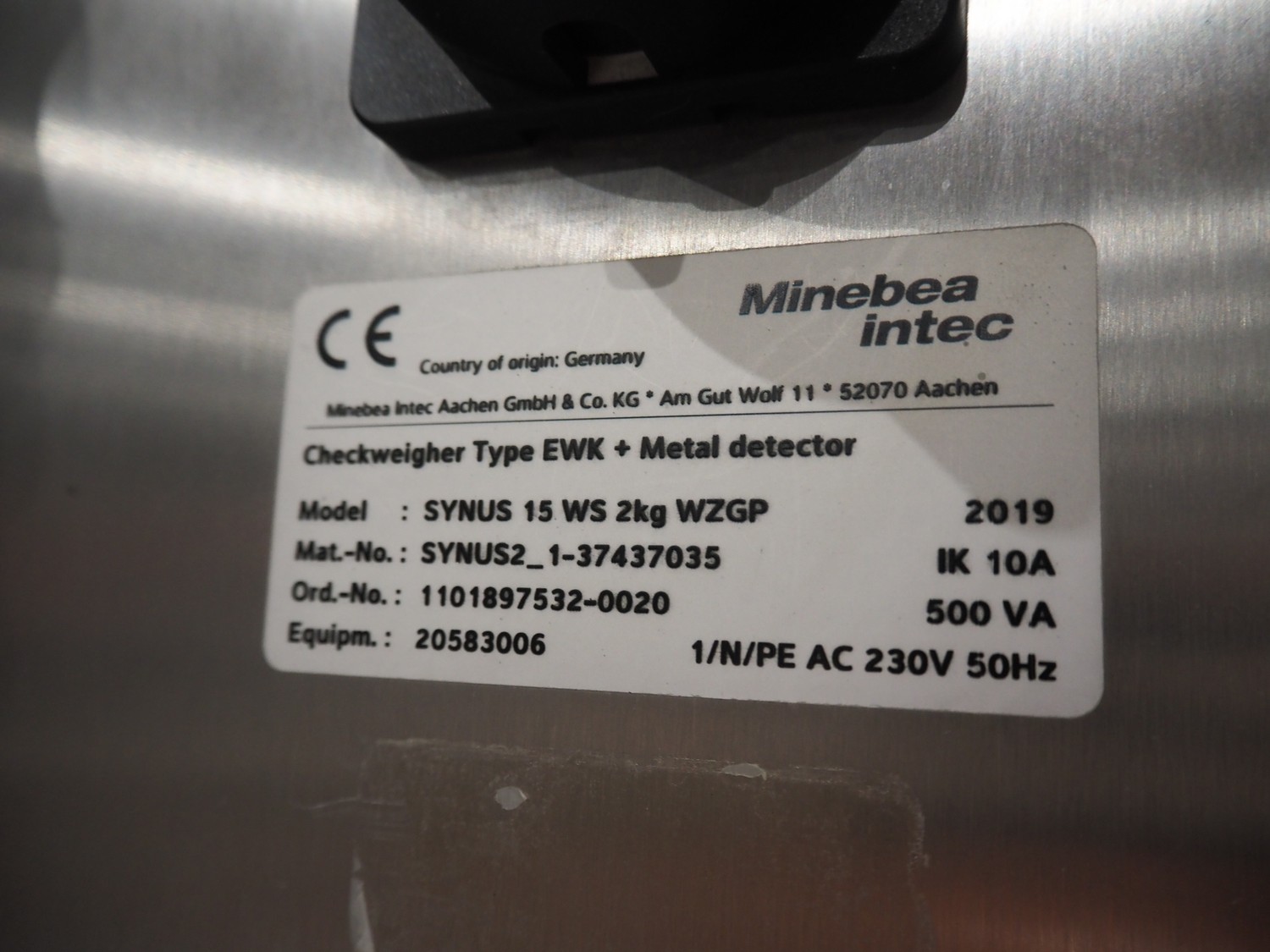 Minebea Intec checkweigher, model: SYNUS 15 WS 2kg WZGP. number: 1101897532-0020, year of construction: 2019, 230 V, 1 Ph, 50 Hz, 10 A, plastic belt, belt width: 200 mm, clearance: 275 mm x 110 mm, total dimensions: 1700 mm x 1250 mm x 2100 mm.