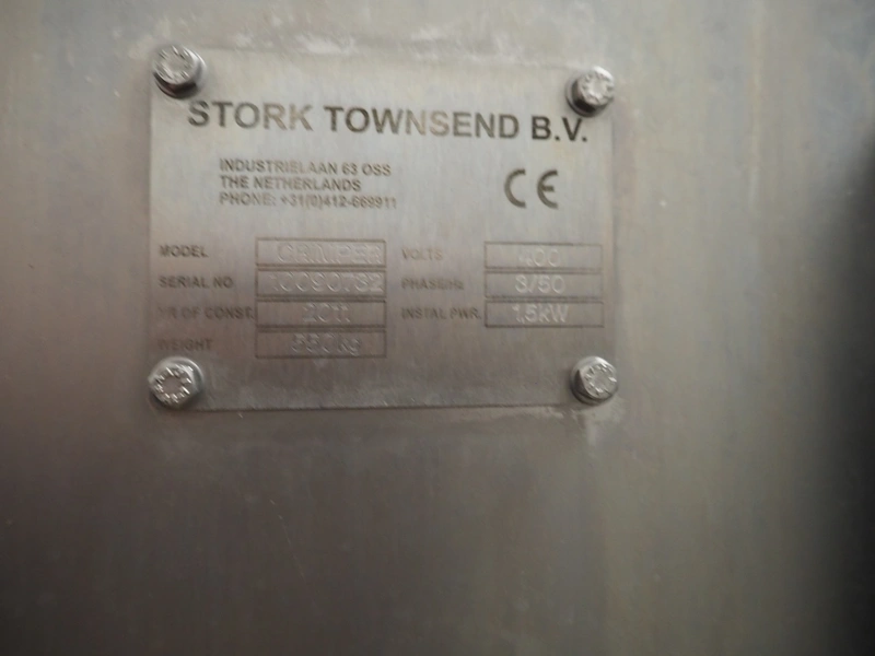 - 3x Stork Townsend, model: Crimper, serial number: 10090732, year of construction: 2011, 400 V, 3 Ph, 50 Hz, 1.5 kW.