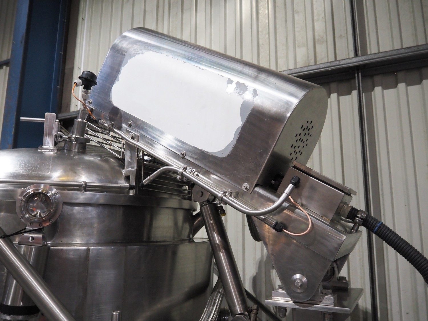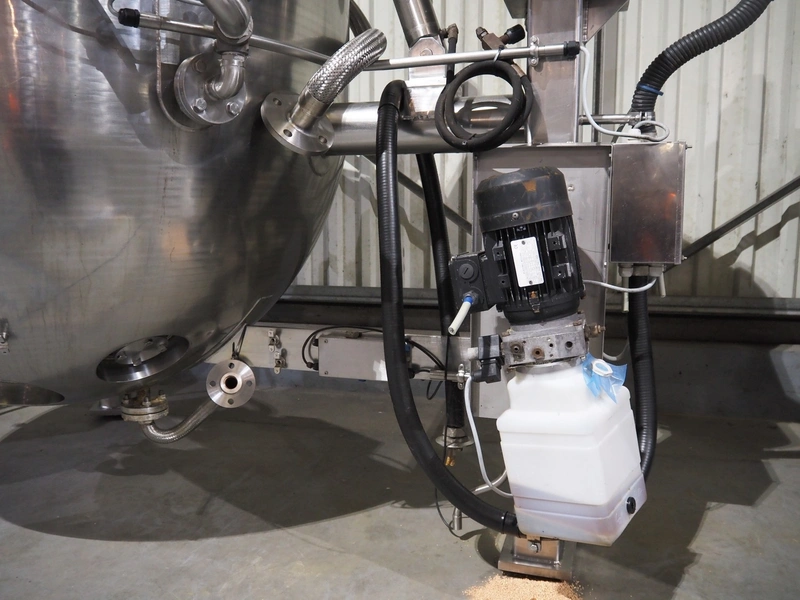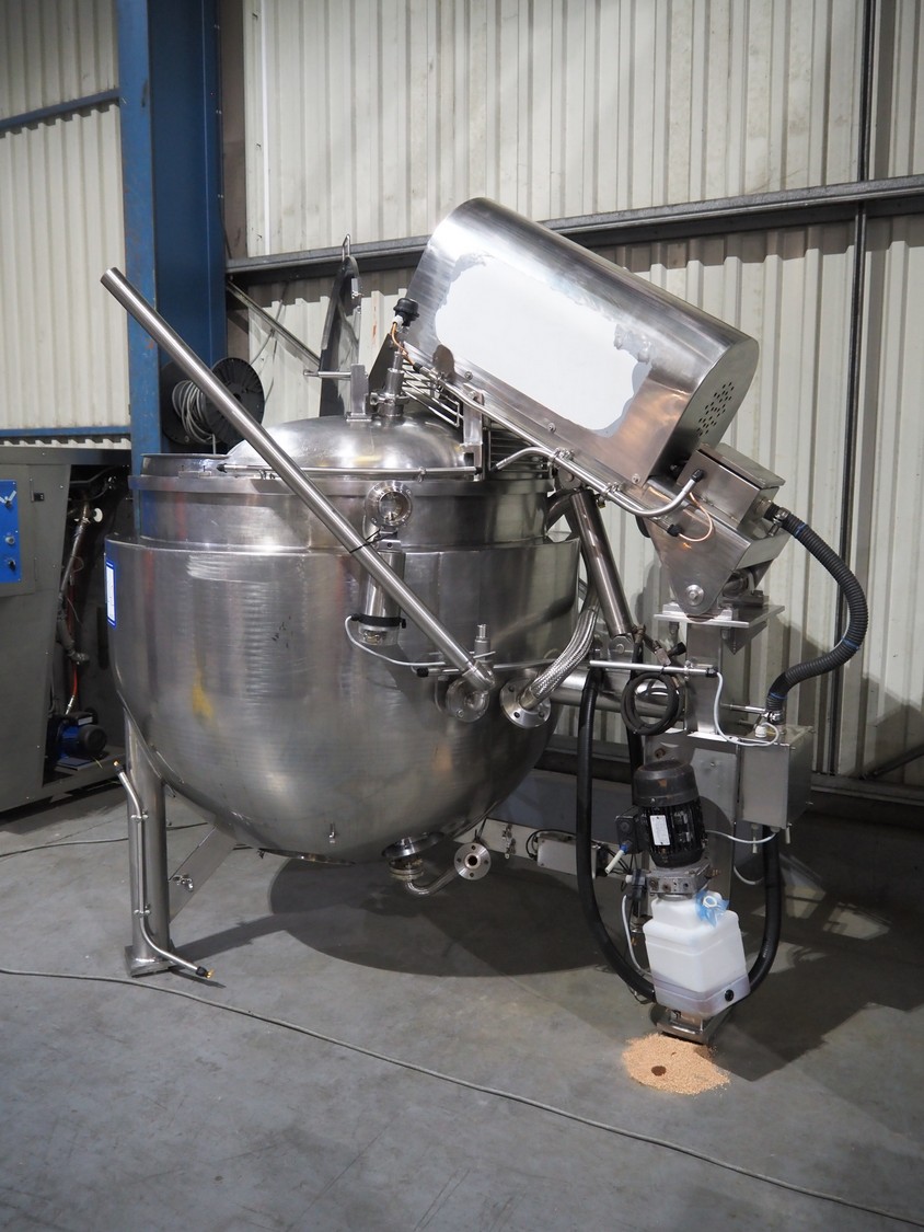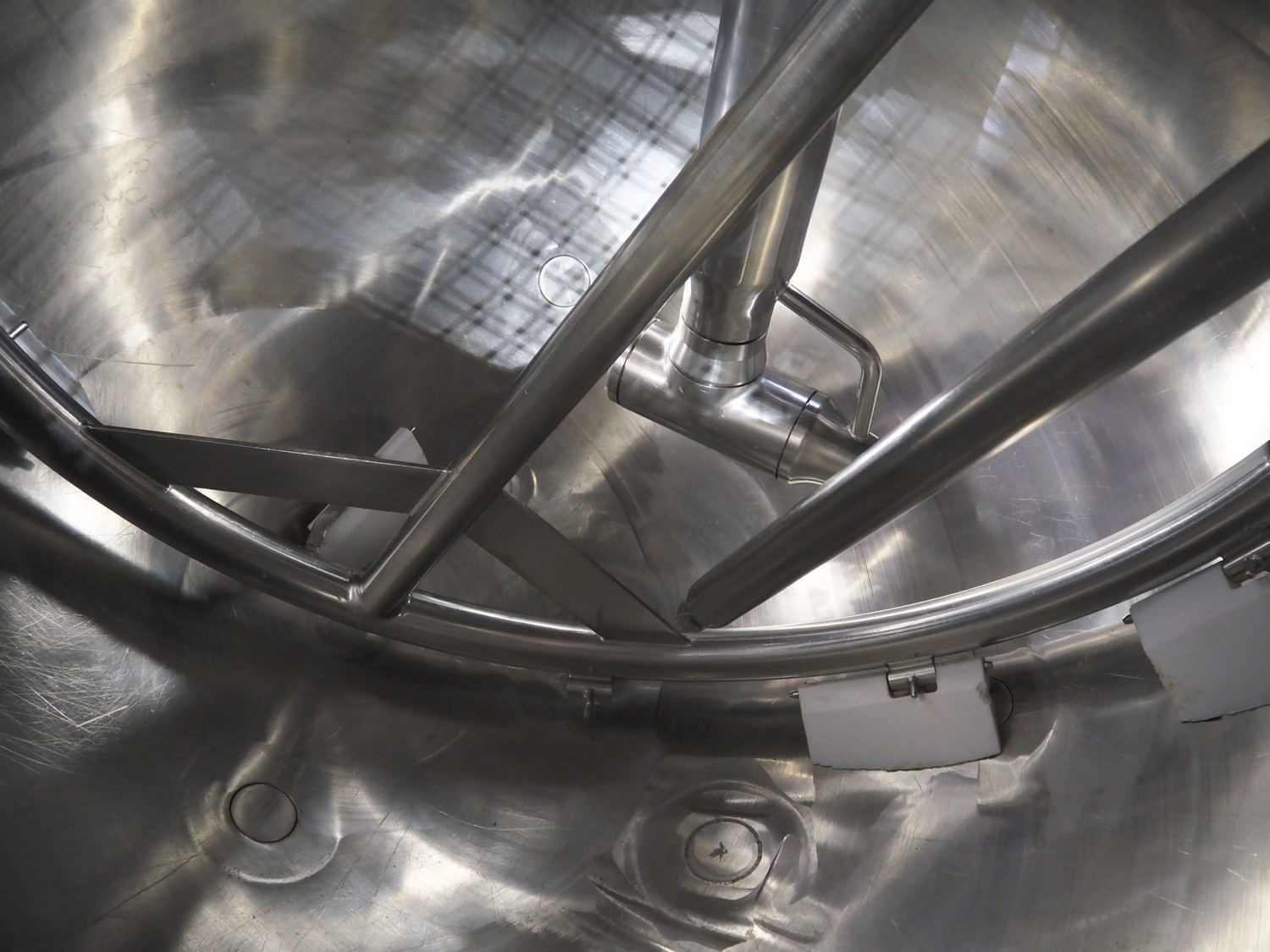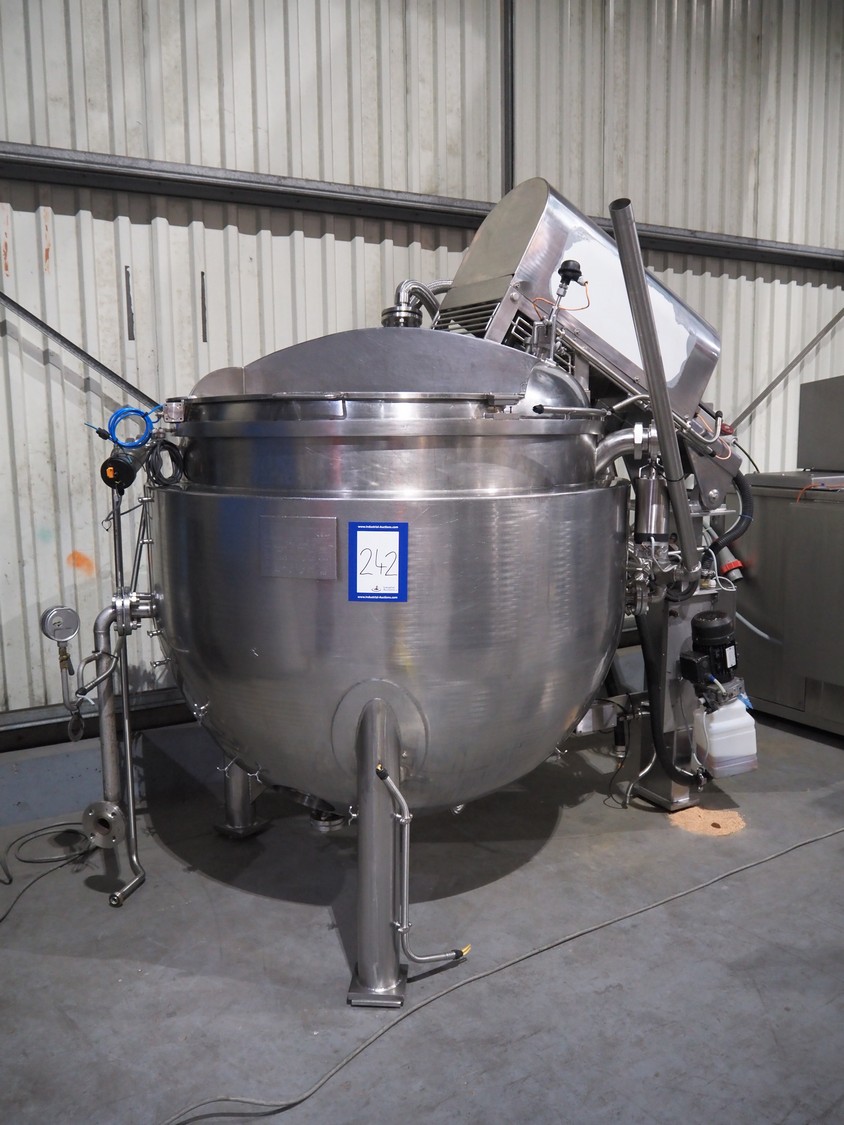 BPT double jacketed cooking kettle with agitator, model: PD 5500 Cat.3, serial number: P00324, year of construction: 2008, maximum heated: 162 °C, dimensions: 2600 mm x 1500 mm x 2400 mm.