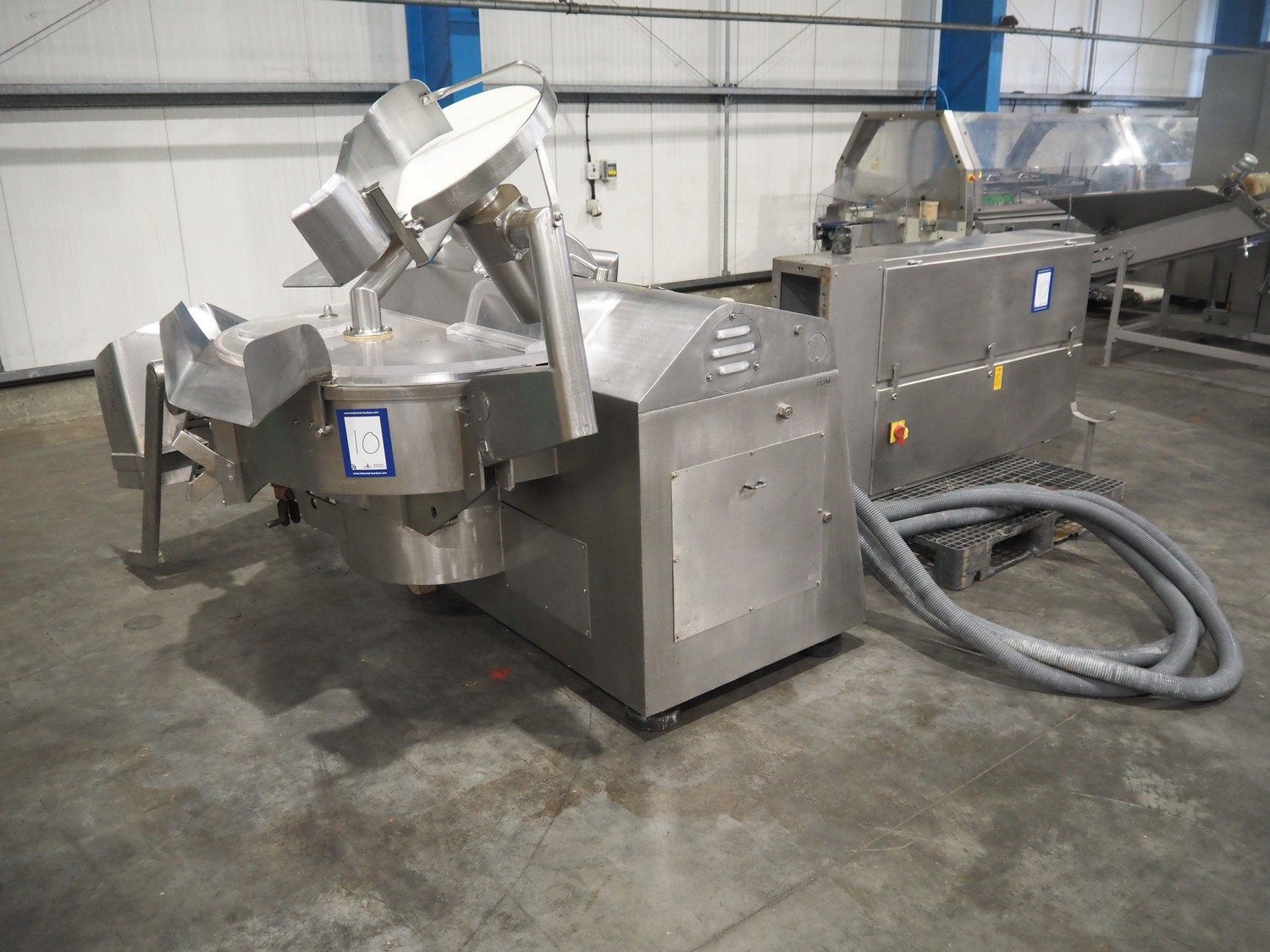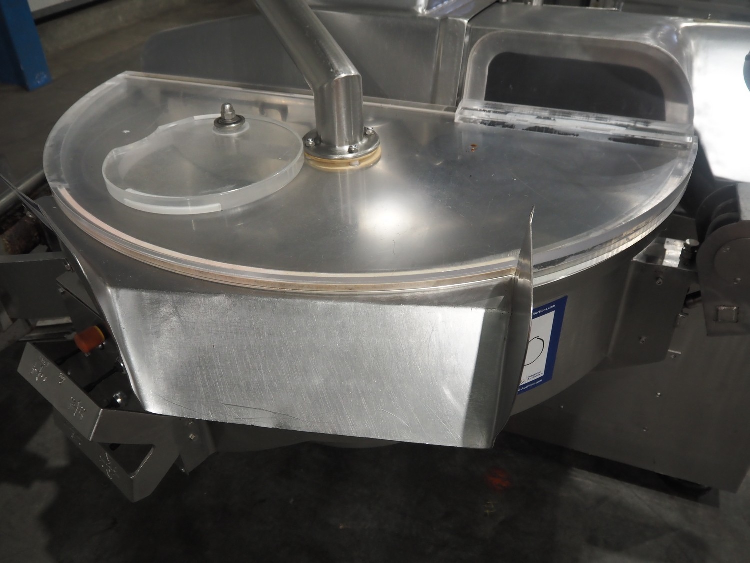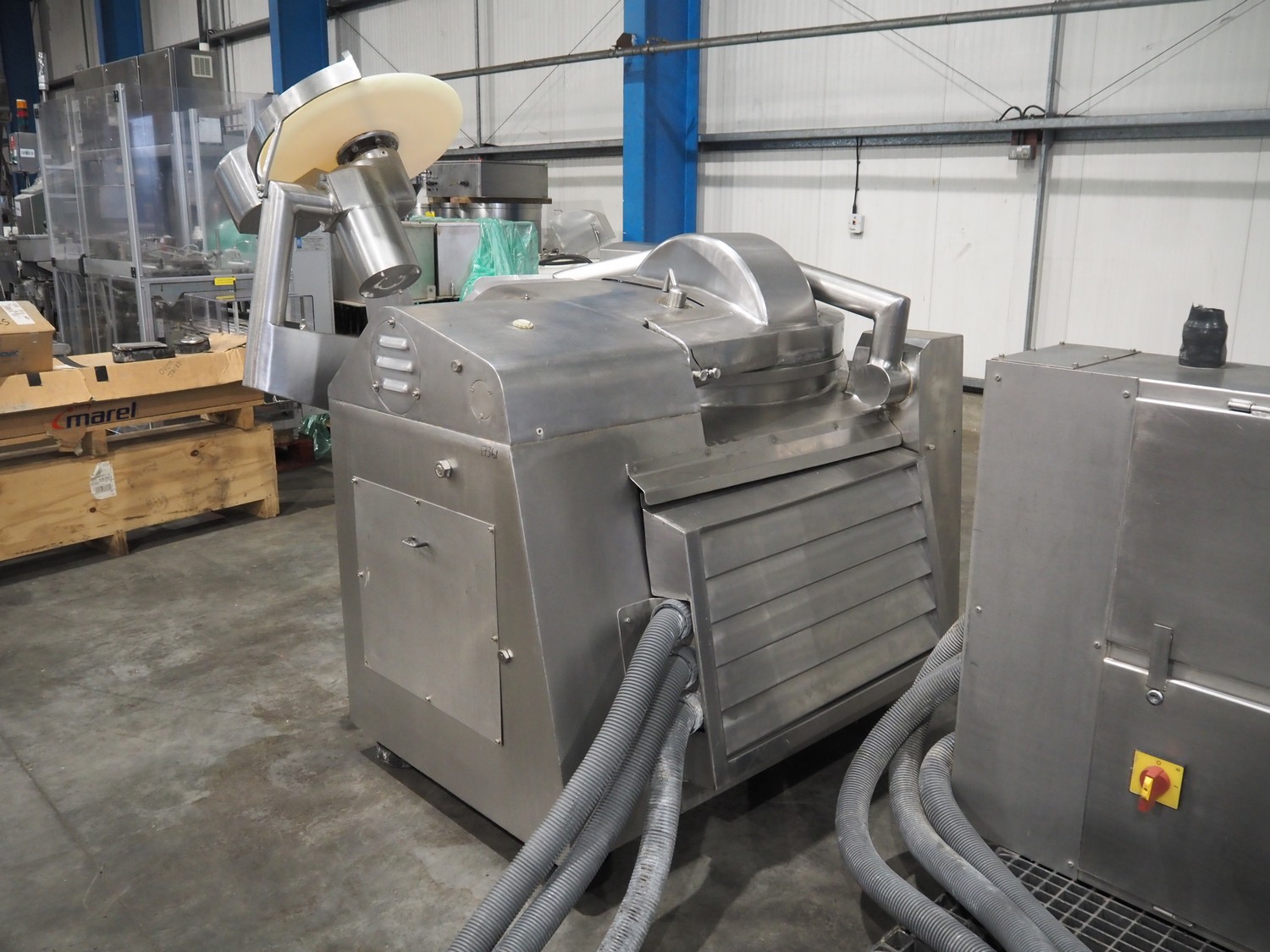 Seydelmann bowl cutter with lifter and ejector, s/s bowl, diameter bowl: 1220 mm, total dimensions: 2500 mm x 2050 mm x 1840 mm. S/s switch cabinet, dimensions: 330 mm x 1000 mm x 1800 mm.