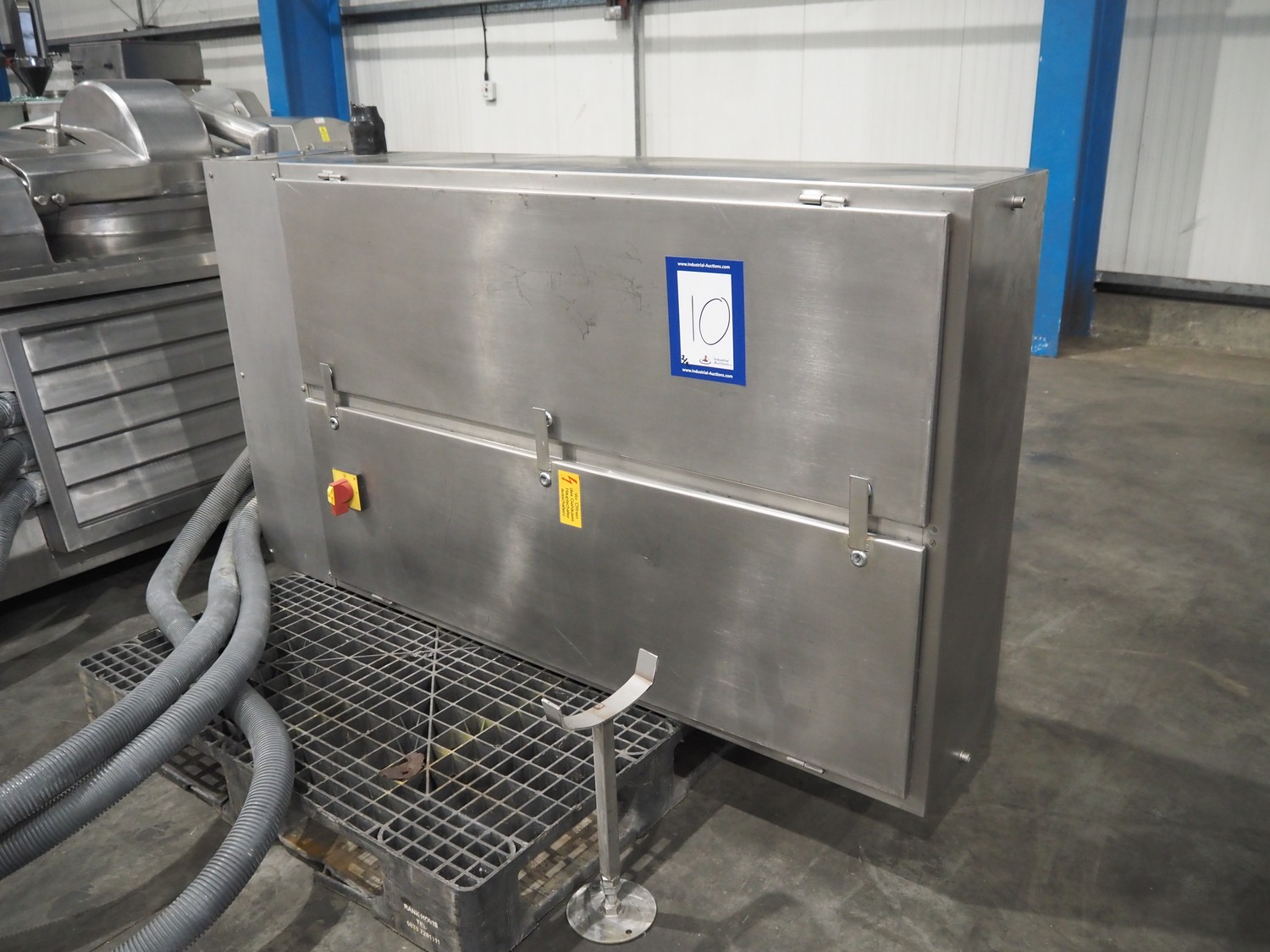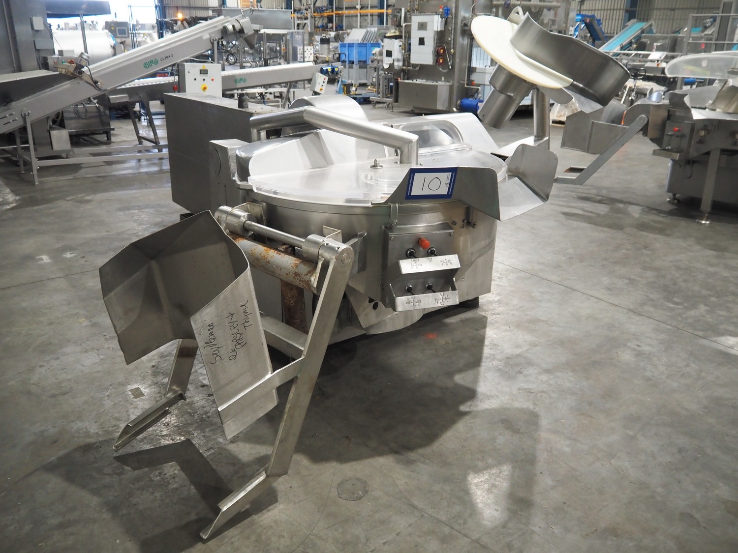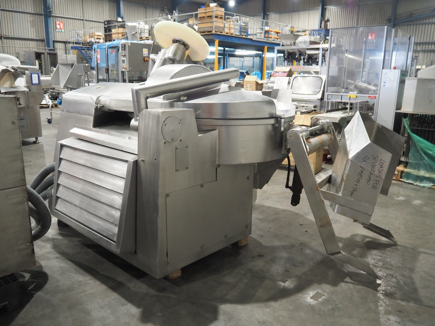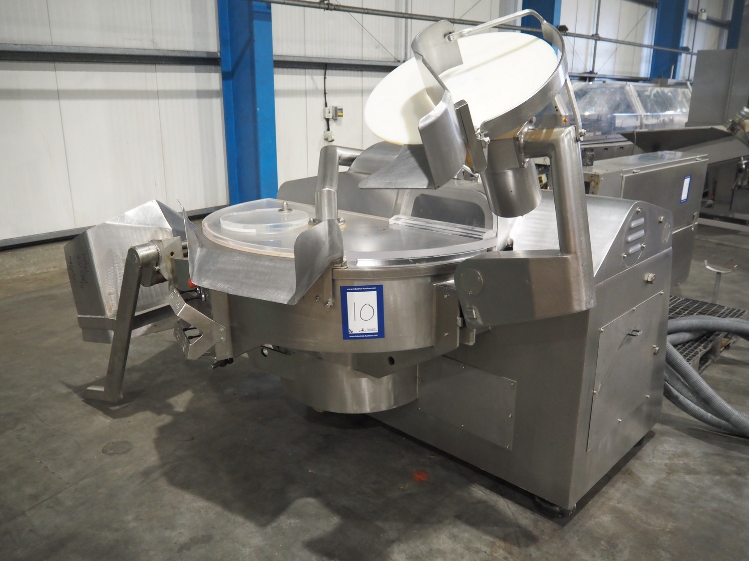 Seydelmann bowl cutter with lifter and ejector, s/s bowl, diameter bowl: 1220 mm, total dimensions: 2500 mm x 2050 mm x 1840 mm. S/s switch cabinet, dimensions: 330 mm x 1000 mm x 1800 mm.