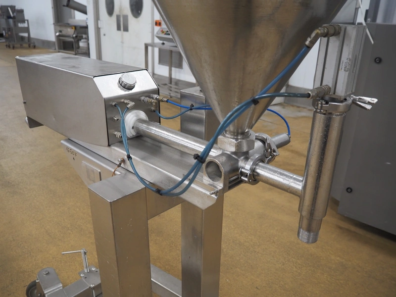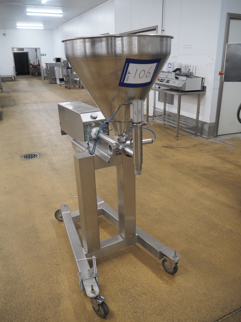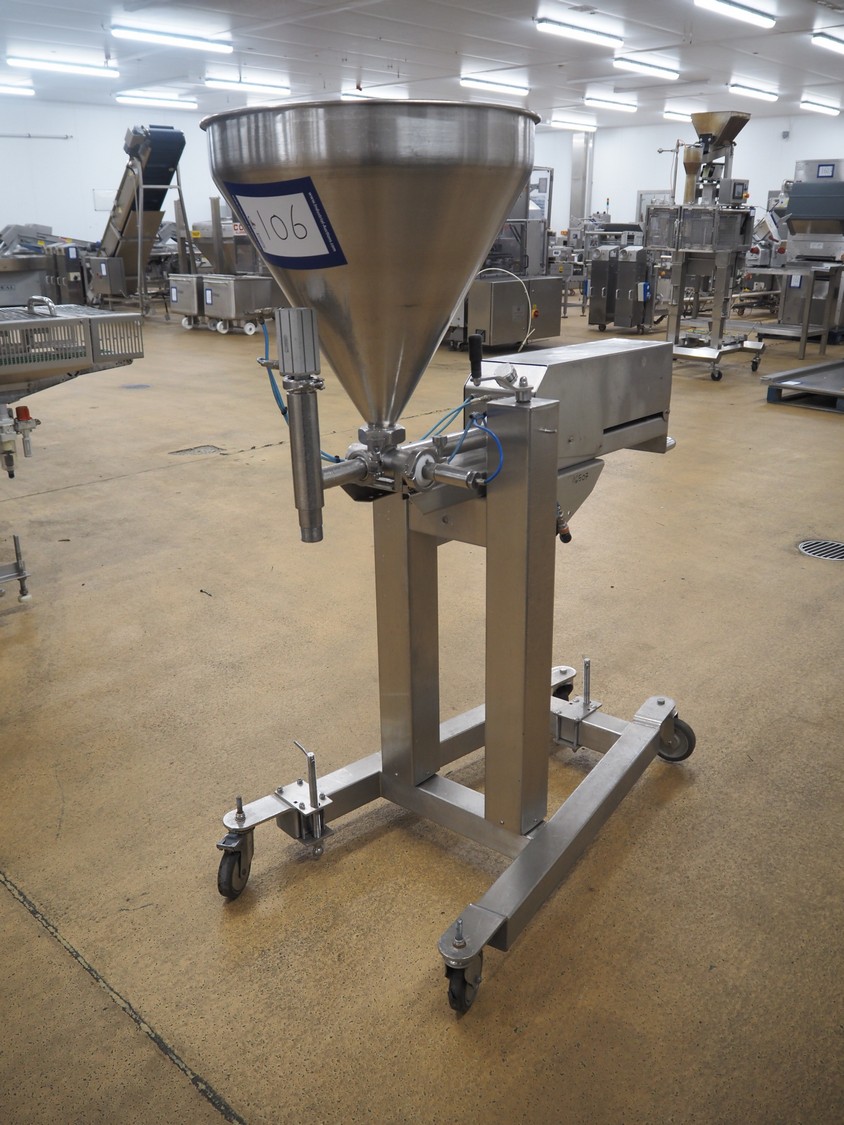 Unifiller mobile depositor, s/s funnel: Ø 530 mm x 500 mm, diameter pipe: 30 mm, total dimensions: 1370 mm x 700 mm x 1550 mm.