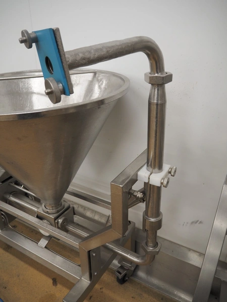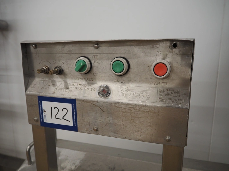 Steck mobile depositor, diameter outfeed: 350 mm, total dimensions: 1500 mm x 700 mm x 1300 mm.